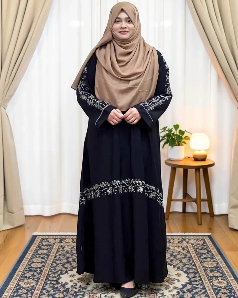 The material used is also a critical element in terms of style and comfort. In warm weather, light materials like georgette, Dubai cherry, and Alex material are suitable. They are loose, light, and do not lead to overheating, yet they are modestly covering. When it is cold, heavy materials like crepe or chiffon with lining can make one comfortable and fashionable.
