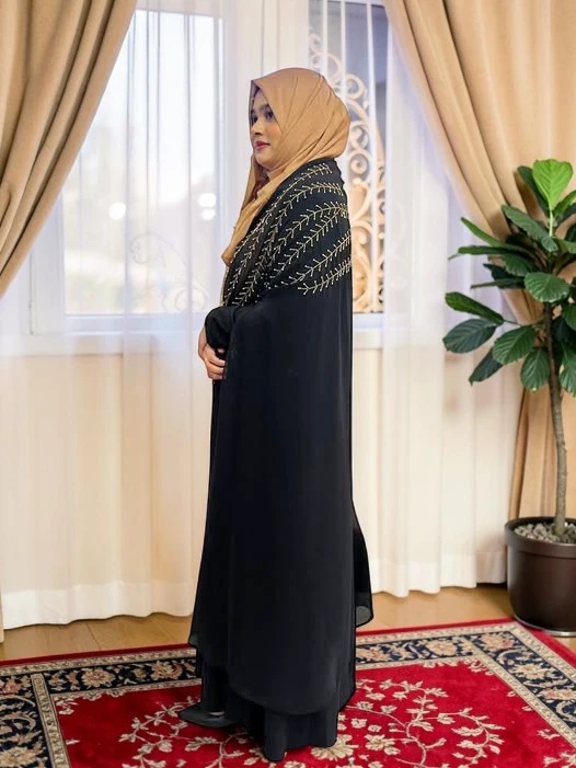 জর্জেট ম্যাটেরিয়াল কারচুপি কেপ| পার্ল ওয়ার্ক সফট ট্রান্সপারেন্ট জর্জেট স্টাইলিশ কেপ