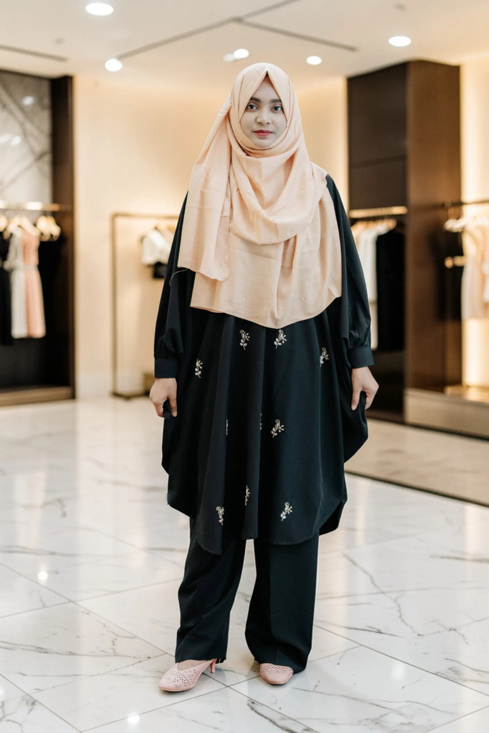 কারচুপি কো-অর্ড সেট | সফট জাফরান ম্যাটেরিয়াল কেপ + প্যান্ট | নন-ট্রান্সপারেন্ট ফ্রি সাইজ quantity