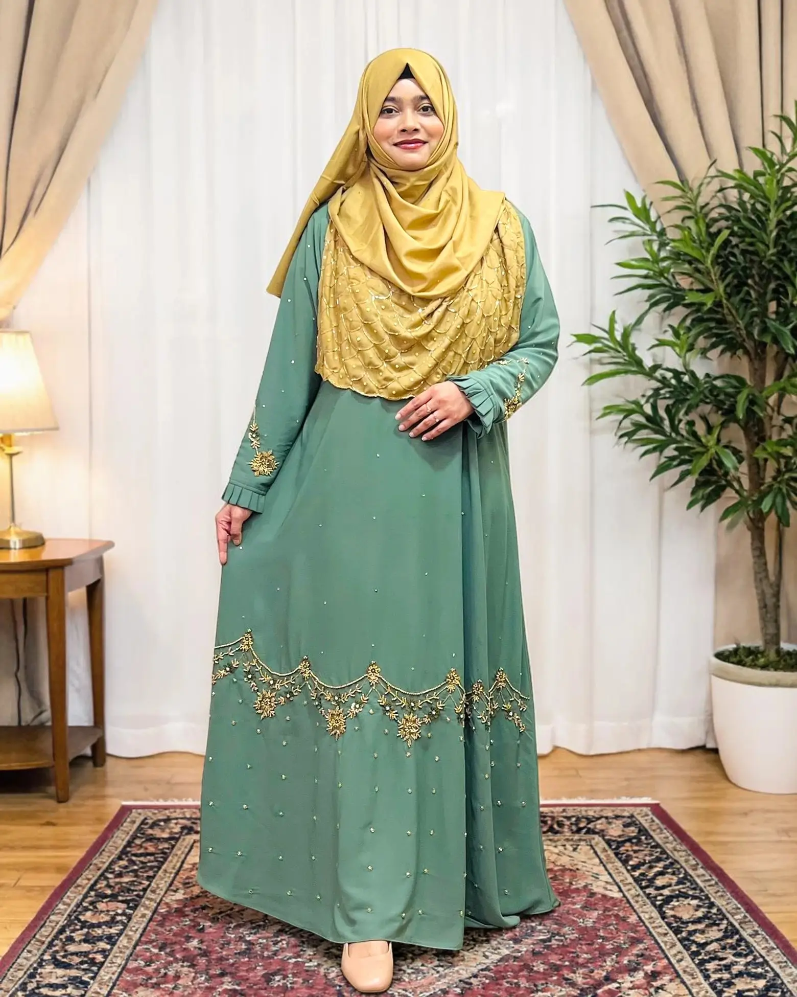 ডাবল পার্ট কারচুপি গাউন | প্রিমিয়াম ডায়মন্ড জর্জেট ও দুবাই চেরি জর্জেট ইনার | quantity