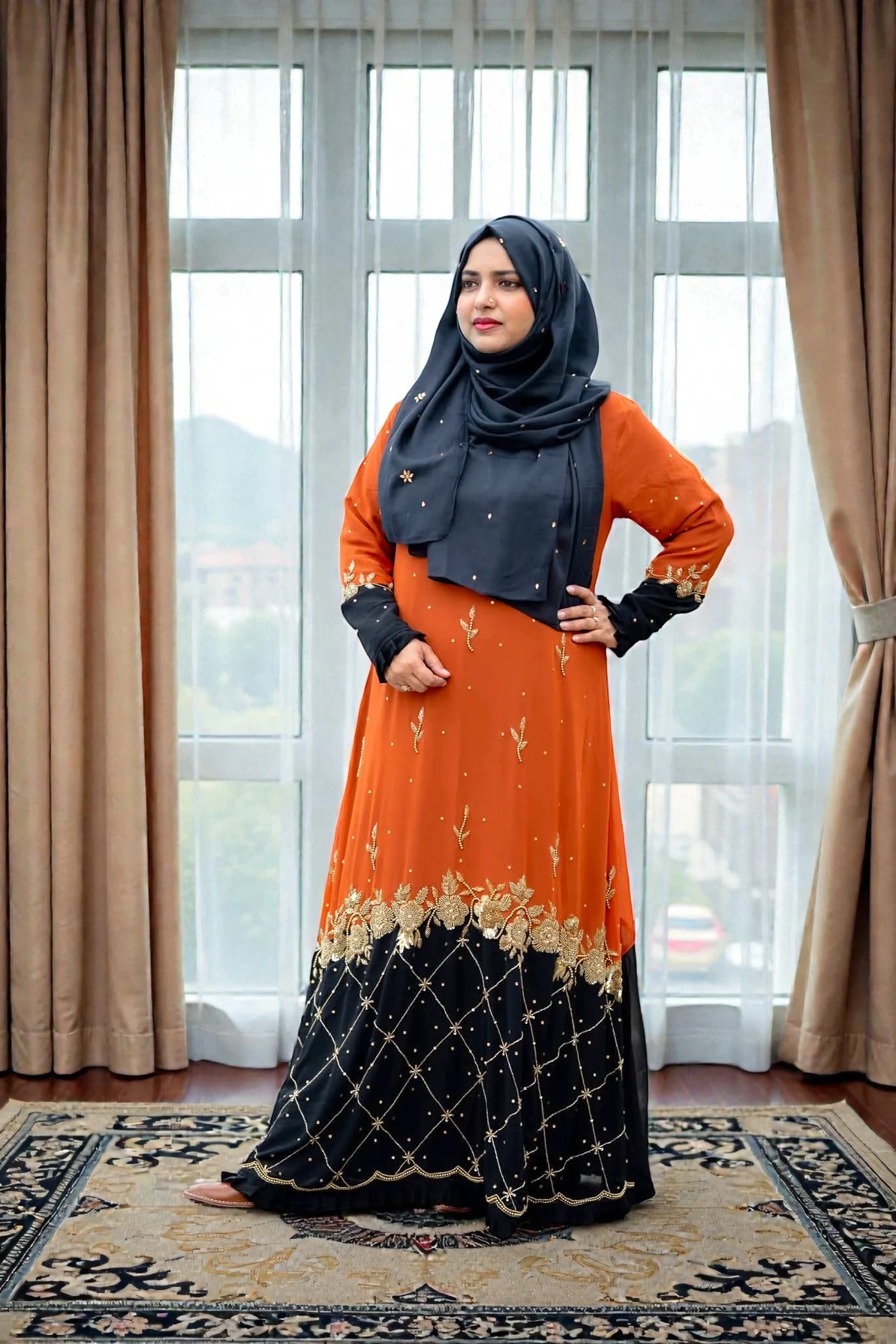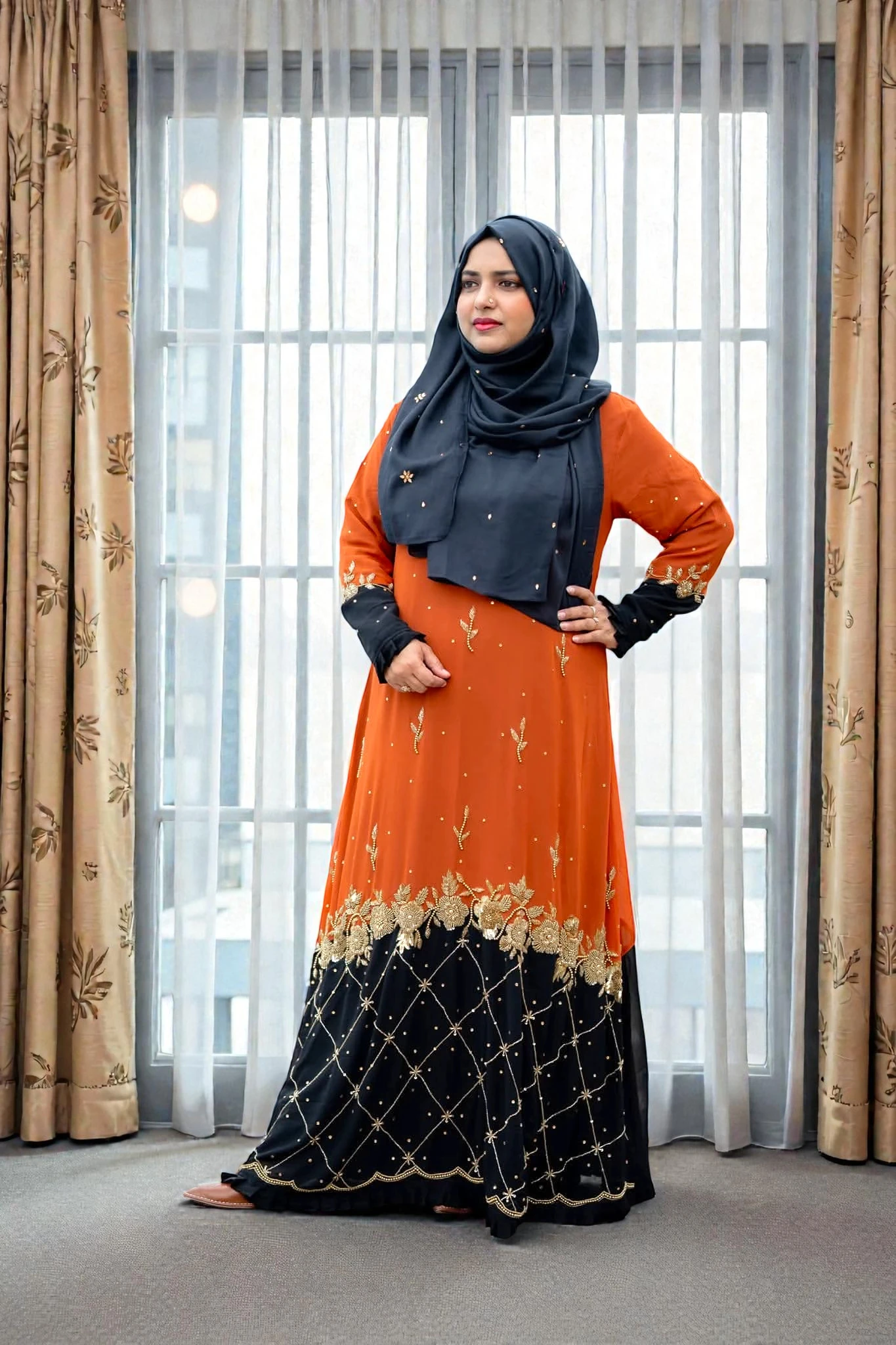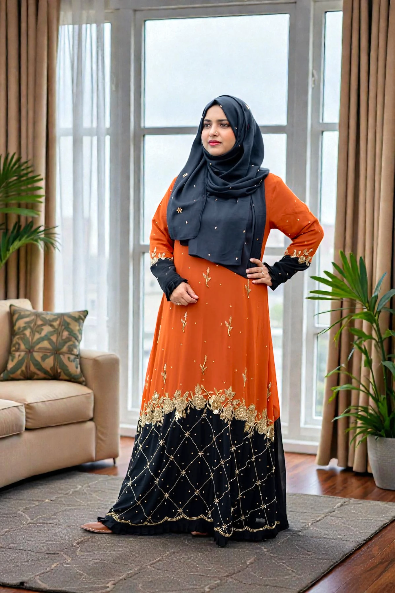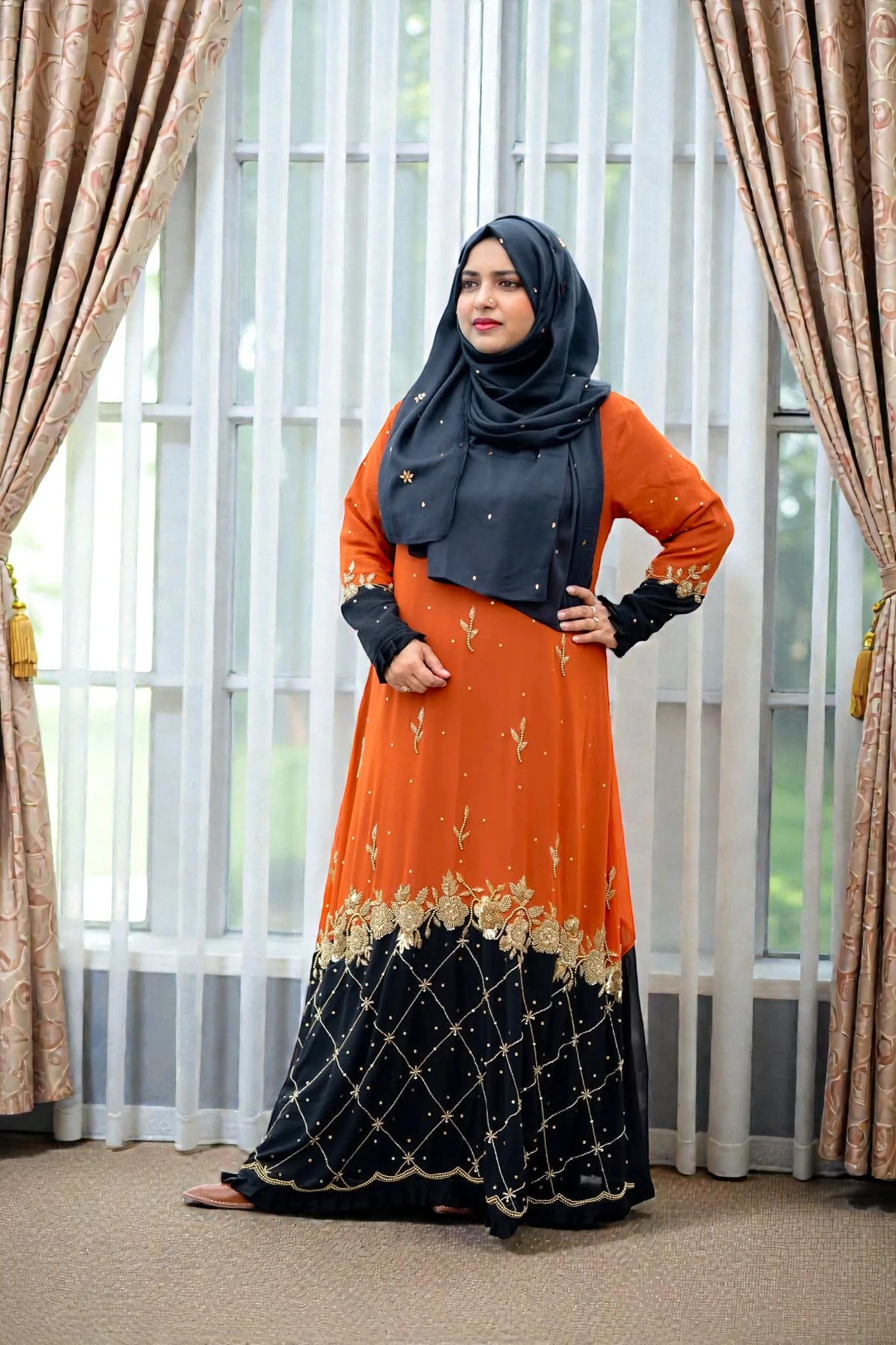 ✅ প্রিমিয়াম জর্জেট ফেব্রিক যা পরতে আরামদায়ক। ✅ BMW ইনারের কারণে গাউনের ঘের এবং ফিনিশিং চমৎকার দেখায়। ✅ নিখুঁত হ্যান্ড এমব্রয়ডারি বা কারচুপি কাজের গ্যারান্টি। ✅ ওয়েডিং বা যেকোনো বড় পার্টির জন্য একদম পারফেক্ট চয়েস।