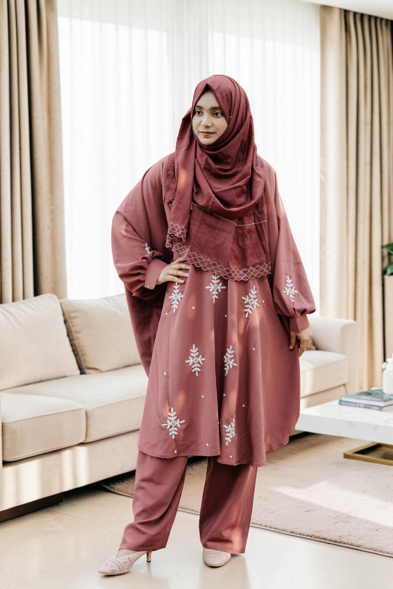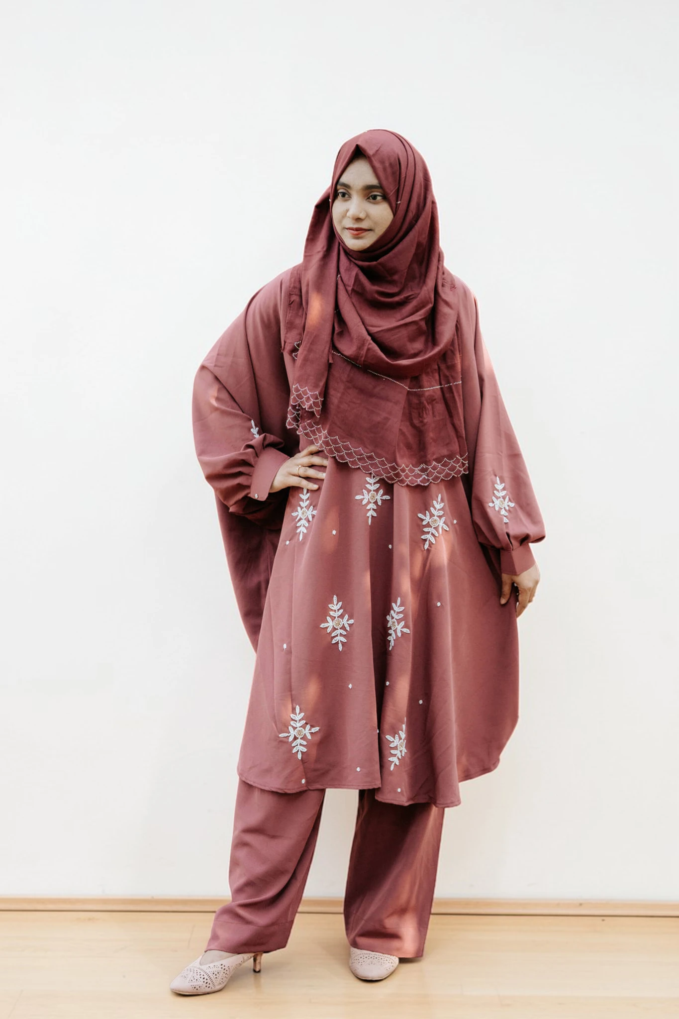 এলিগেন্ট কারচুপি কো-অর্ড ড্রেস | কমফোর্টেবল ফ্রি সাইজ কেপ সেট