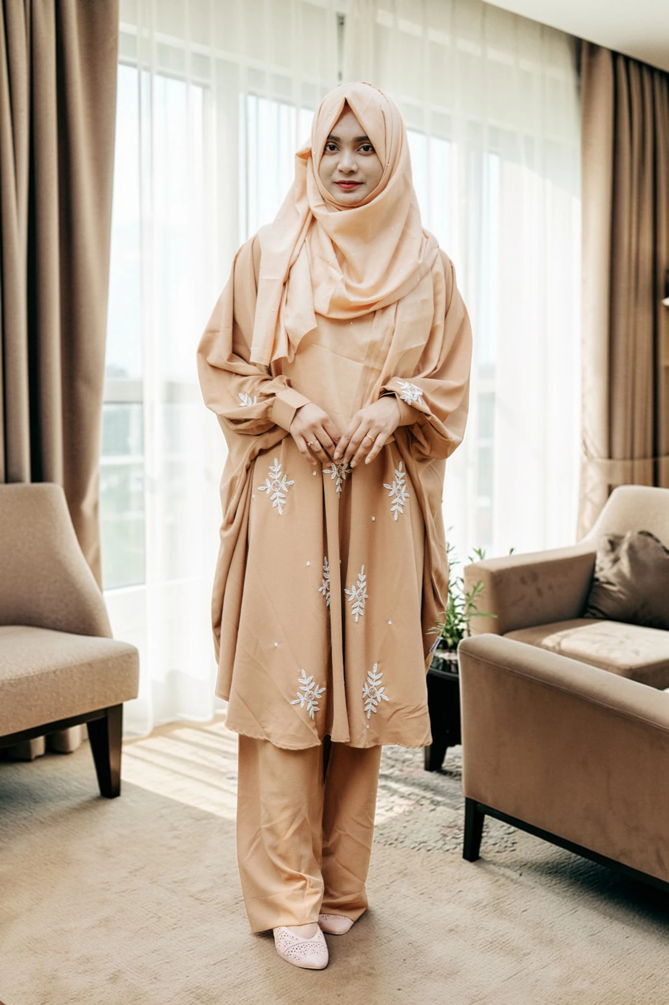 প্রিমিয়াম কারচুপি কো-অর্ড সেট | সফট ফ্রি সাইজ কেপ +প্যান্ট সেট
