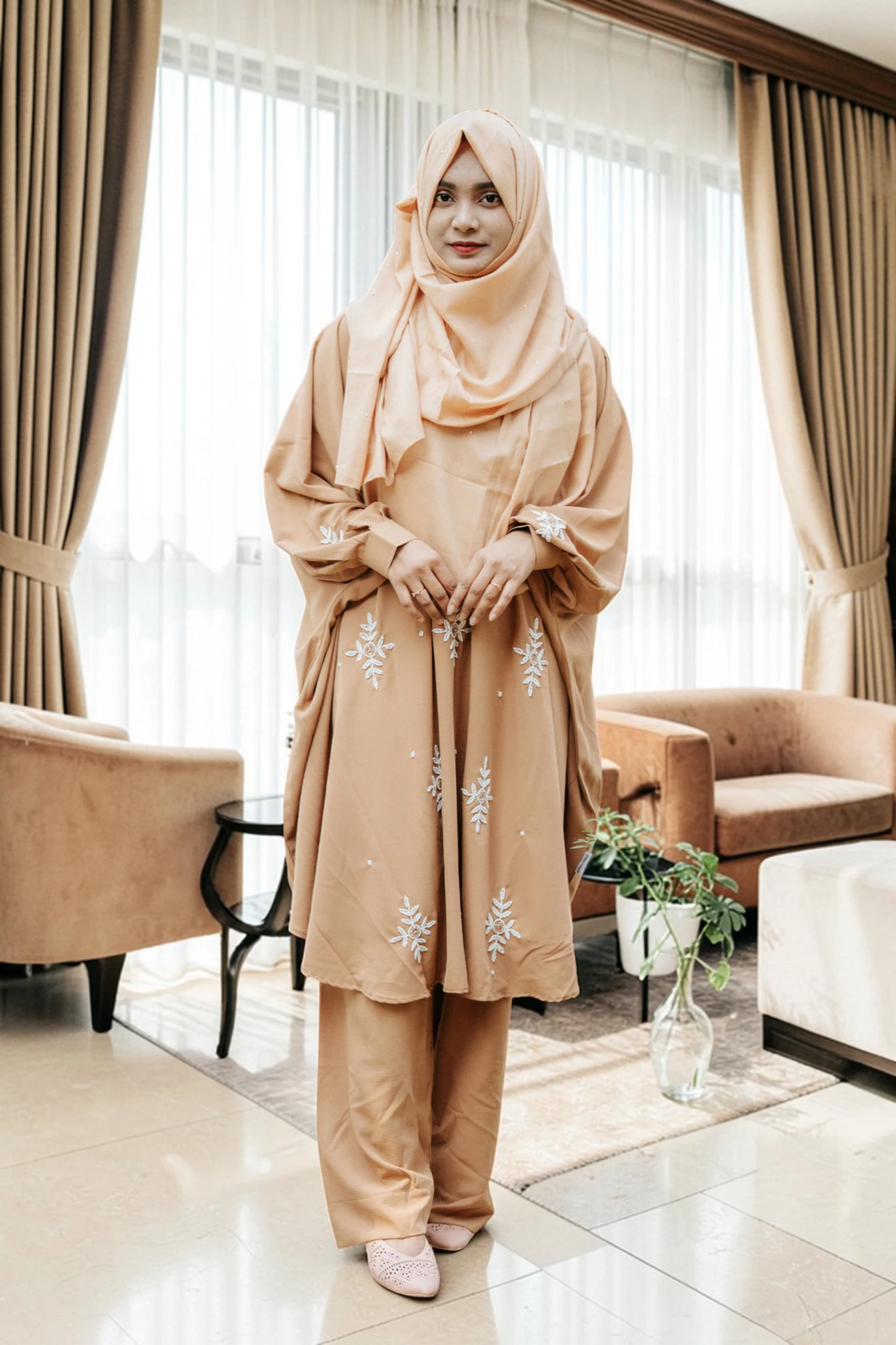 প্রিমিয়াম কারচুপি কো-অর্ড সেট | সফট ফ্রি সাইজ কেপ +প্যান্ট সেট quantity