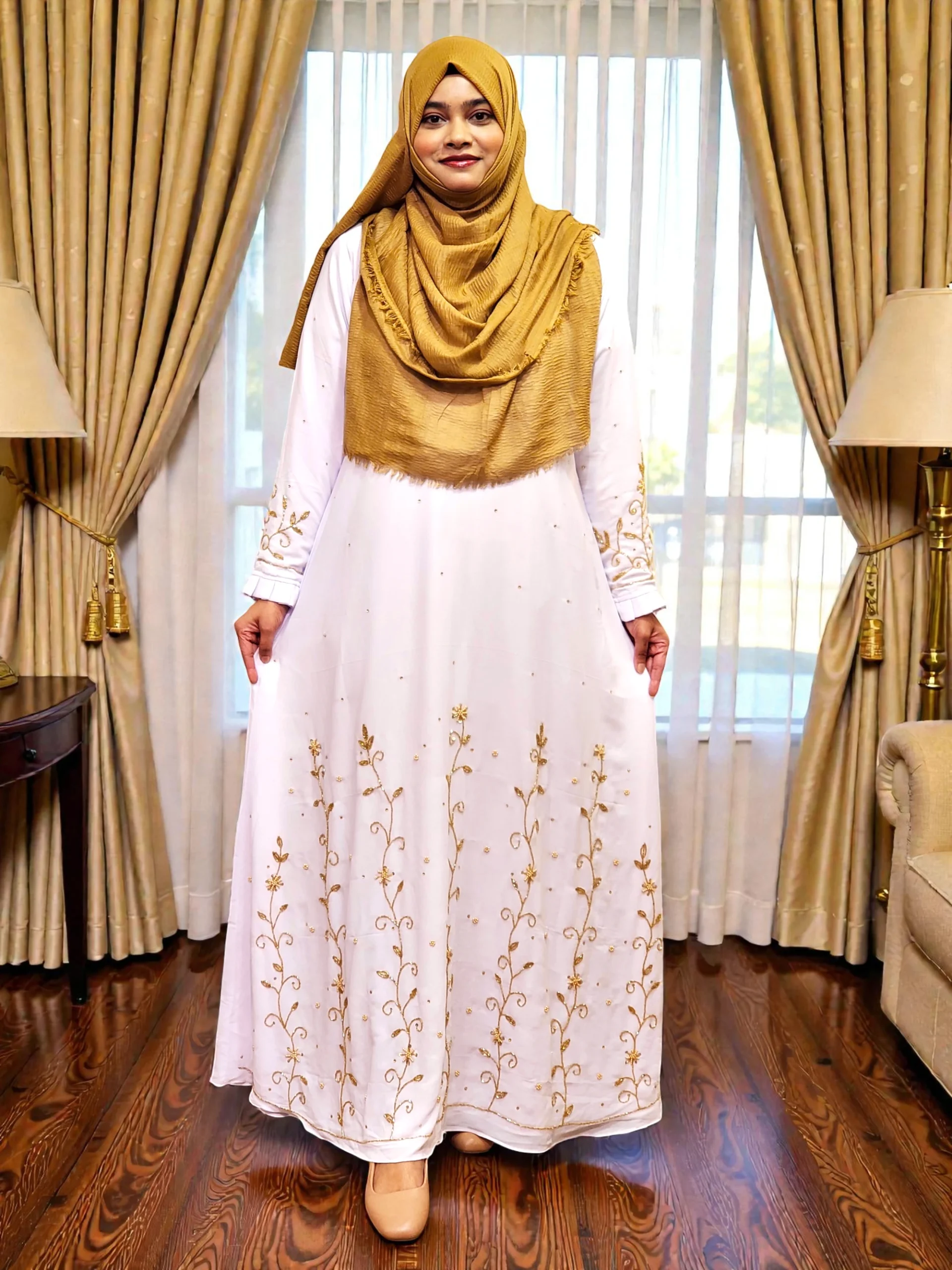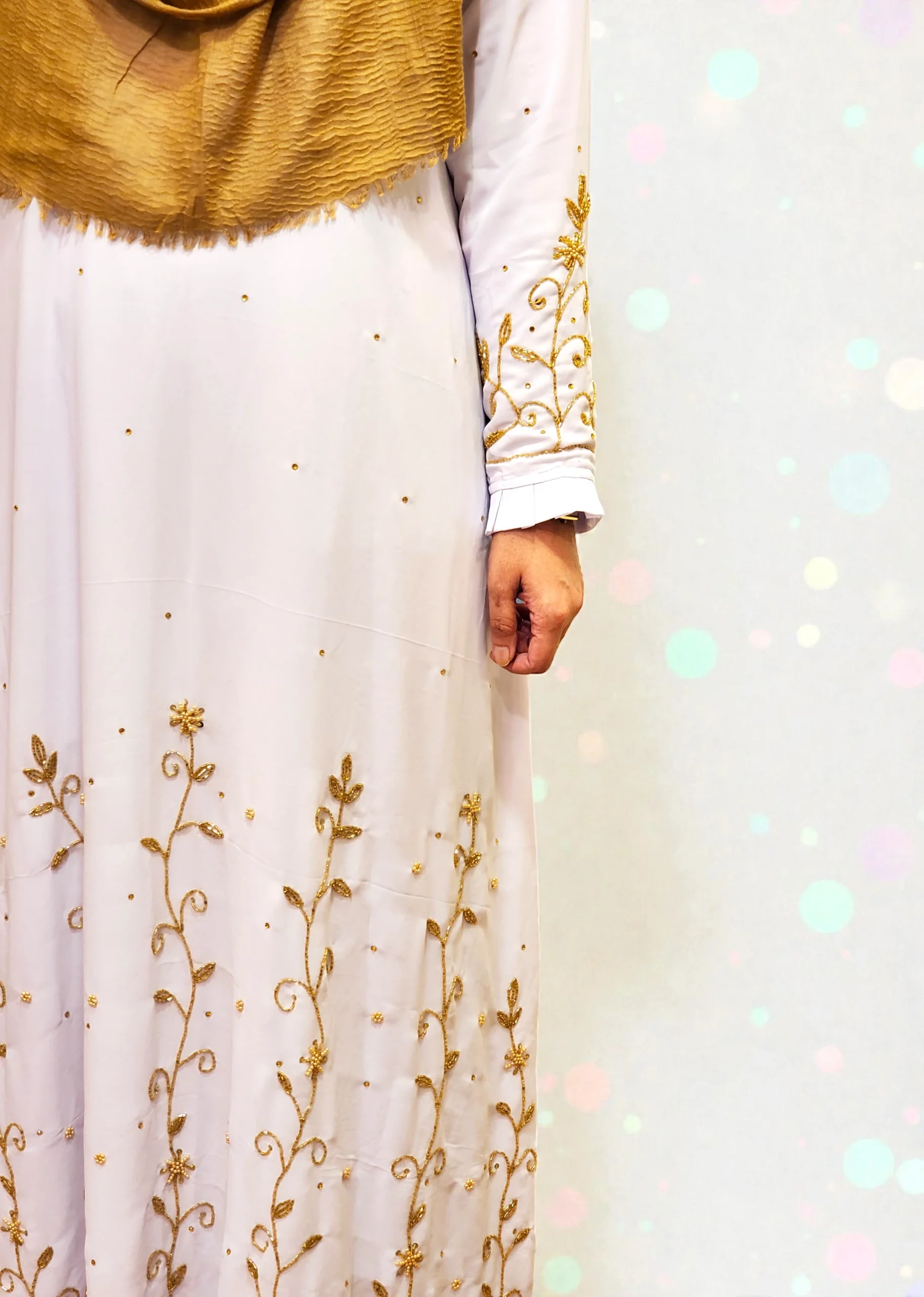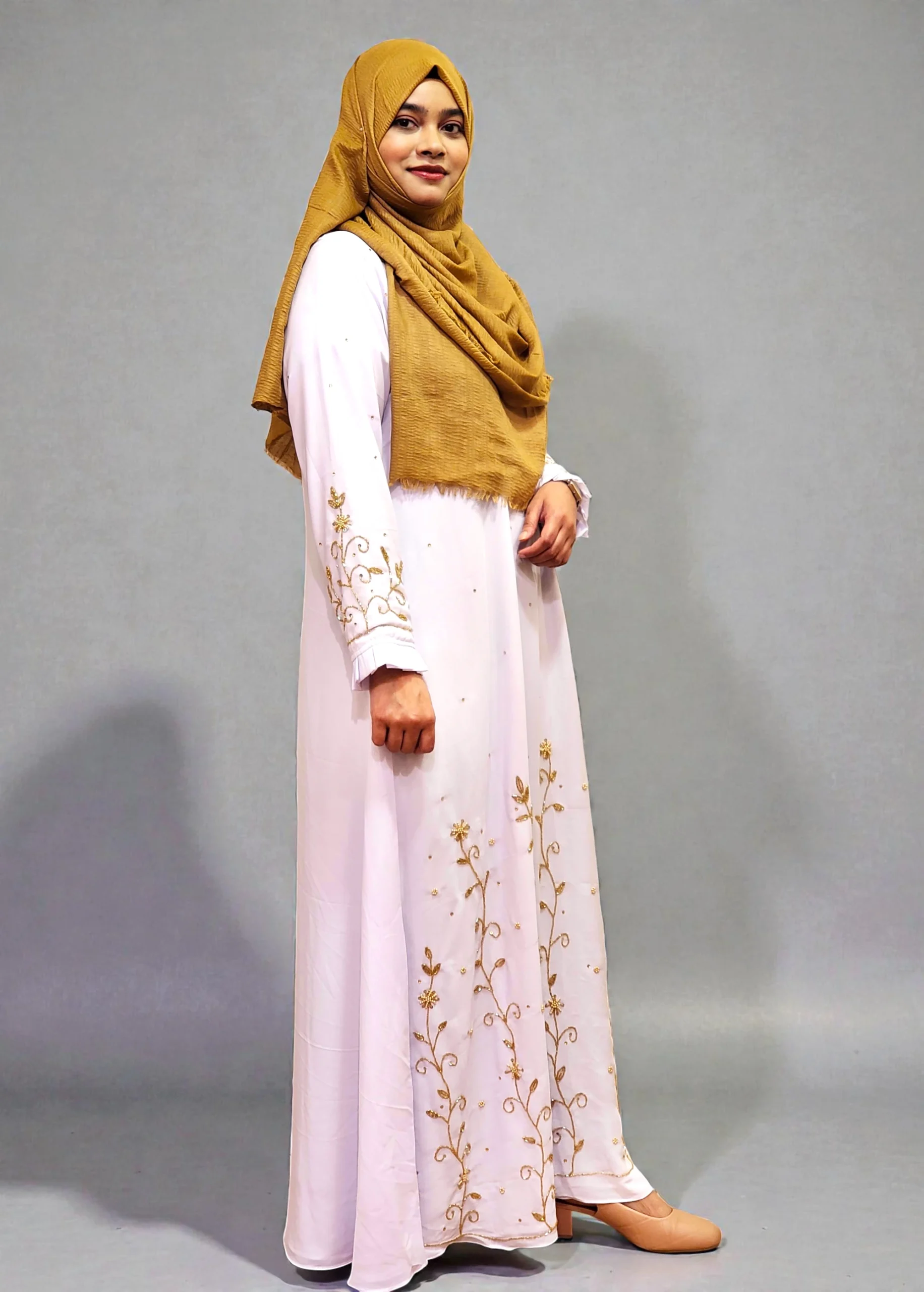 ডাবল পার্ট কারচুপি গাউন সাদা জর্জেট ম্যাটেরিয়ালের ওপর গর্জিয়াস কারচুপি কাজ করা হয়েছে