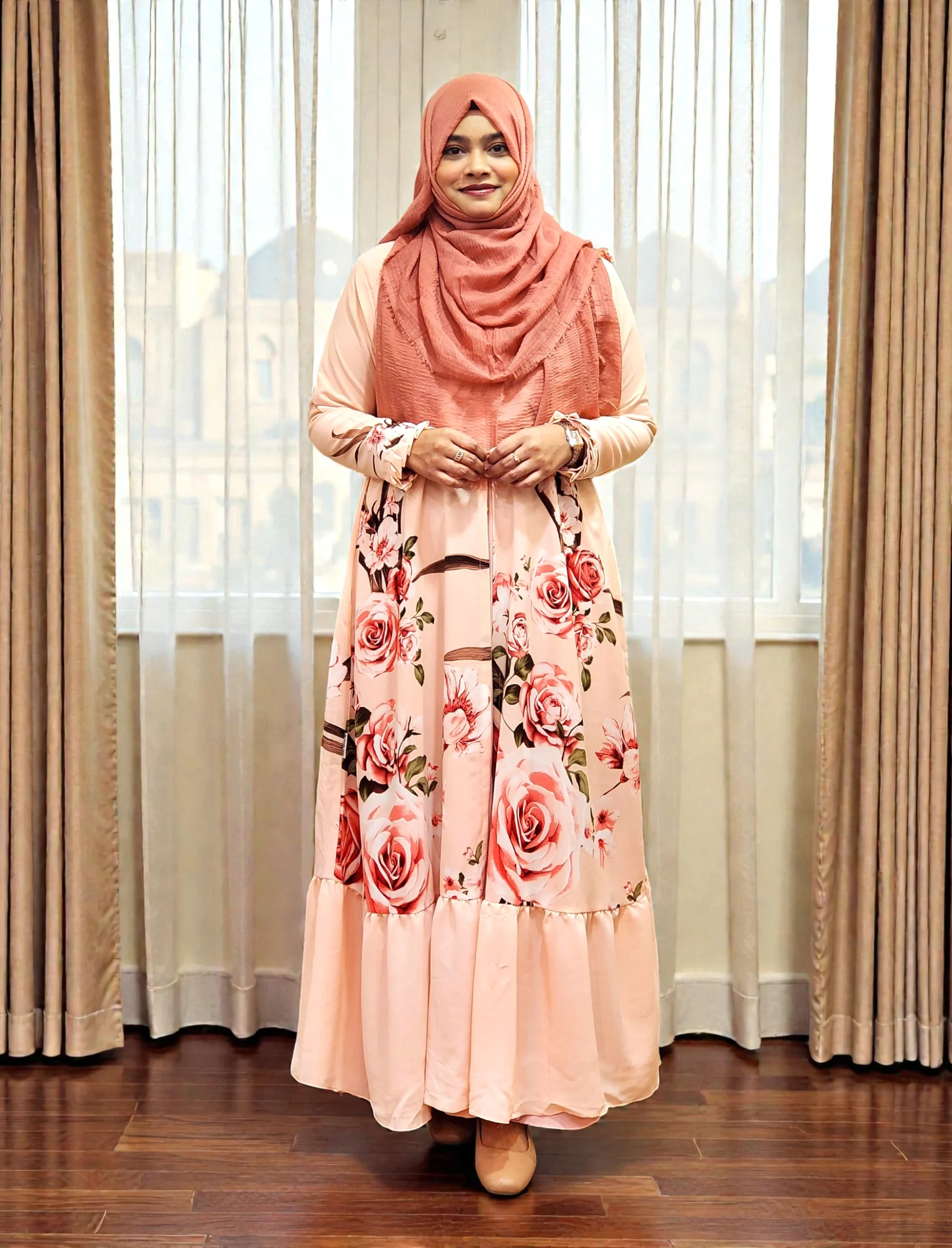 নতুন মারমেইড কিমোনো সফট এ্যালেক্স ম্যাটেরিয়ালে বানানো। কোমরে ফিতা আছে। নিচে কুচি দিয়ে লং ফ্রিল দেয়া। হাতে ফ্রিল আছে।