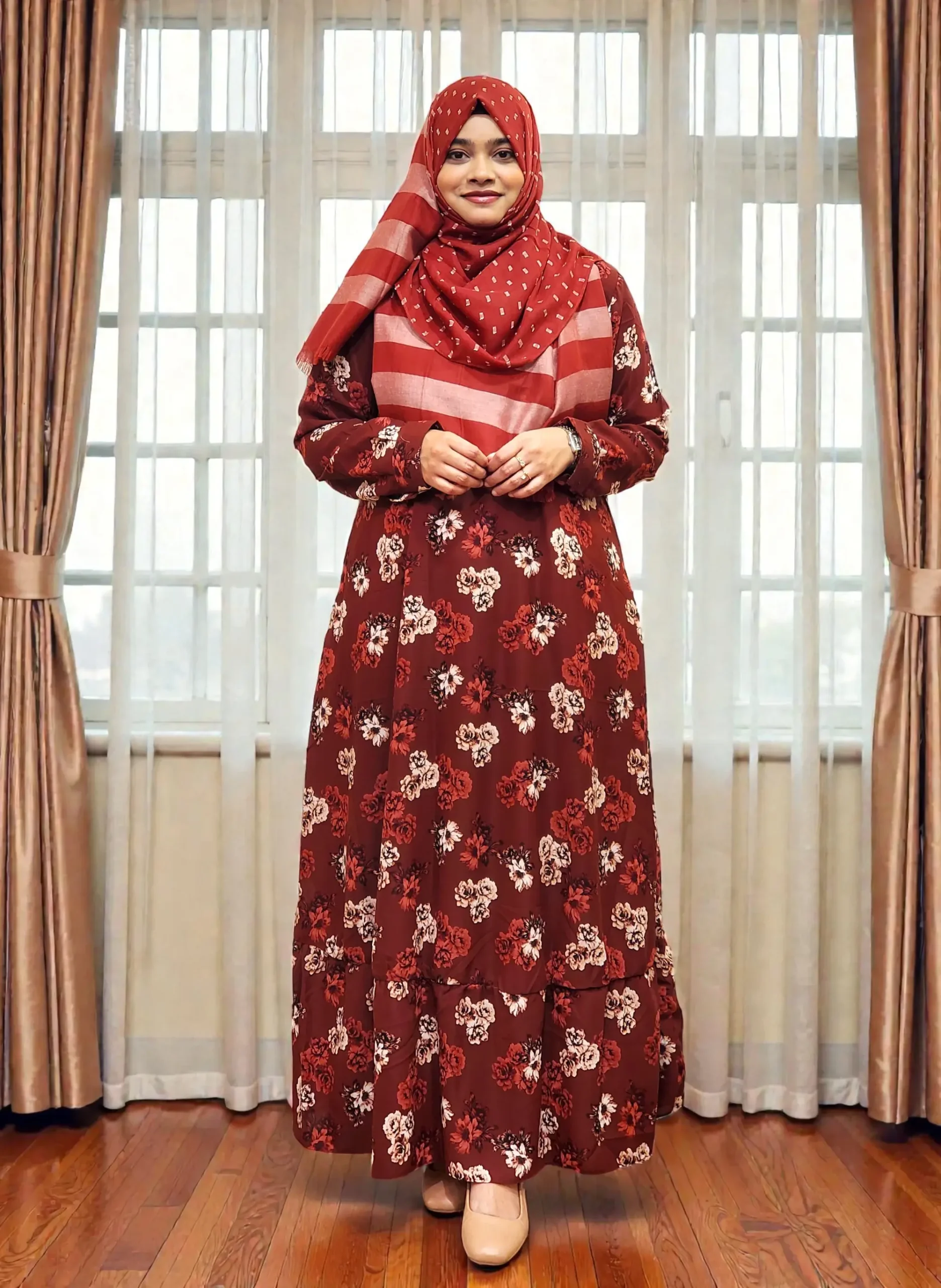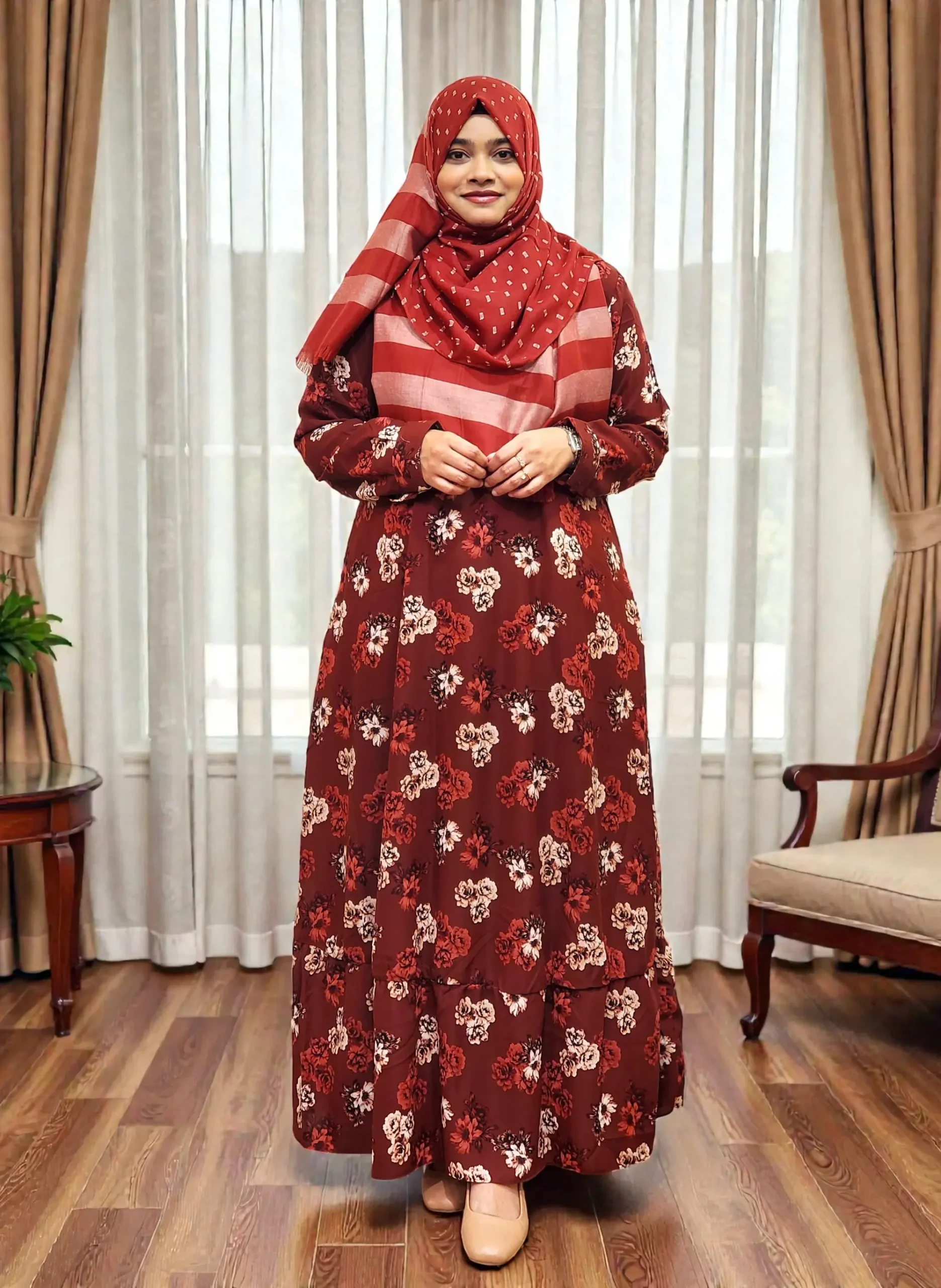 গরমের দিনে বা দীর্ঘ সময় পরে থাকার সময় অনেকেই অস্বস্তি অনুভব করেন। এই গাউনটির বড় একটি বিশেষত্ব হলো—এটি সামার ফ্রেন্ডলি। কাপড়টি খুবই হালকা ও ব্রিদেবল হওয়ায় পরে গরম লাগবে না, ইন শা আল্লাহ। যারা সারাদিন অফিস, অনুষ্ঠান বা দাওয়াতে থাকেন, তাদের জন্য এটি একটি আদর্শ গাউন।