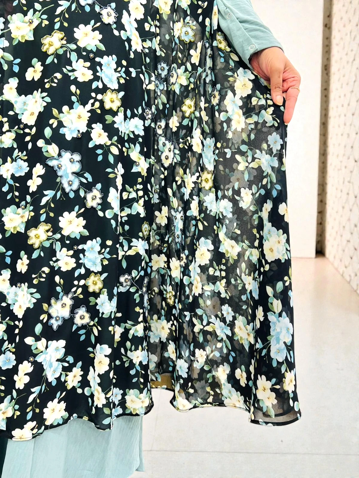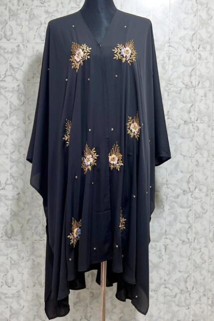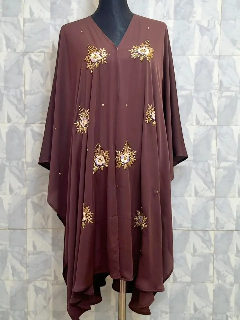 প্রিন্টের ওপর নিখুঁত কারচুপি কাজ করা সফট জর্জেট পকেট কেপ (ফ্রি সাইজ)