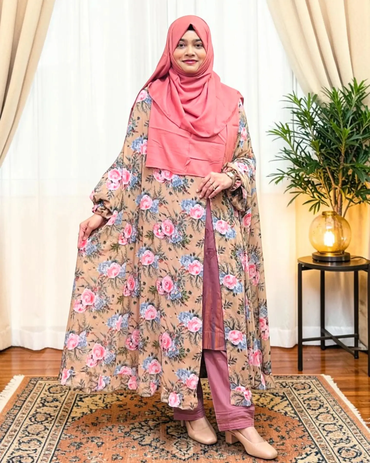 নতুন প্রিন্টেড ফিউশন কেপ উইথ কারচুপি | সামার ফ্রেন্ডলি খিমার স্টাইল কেপ