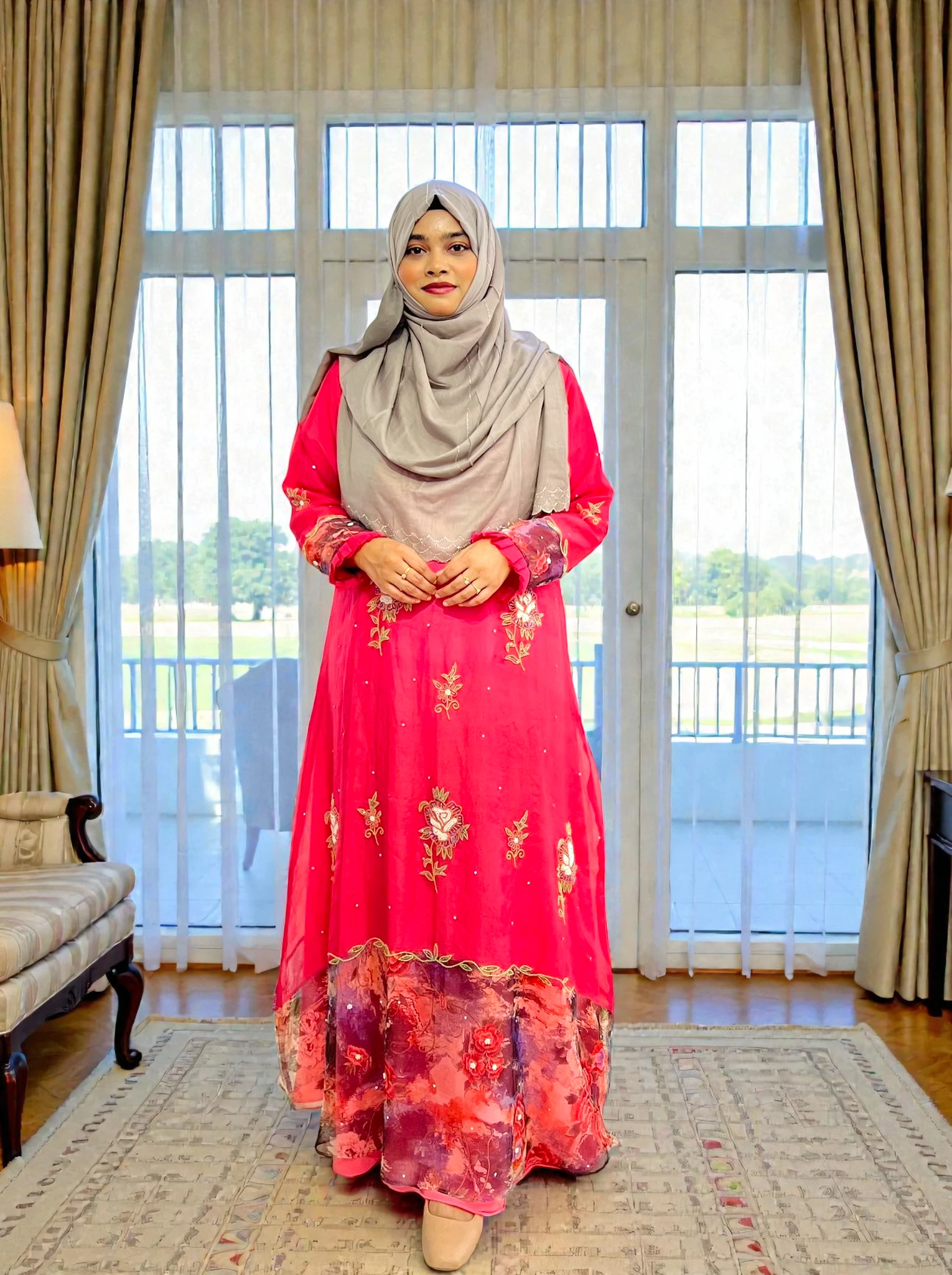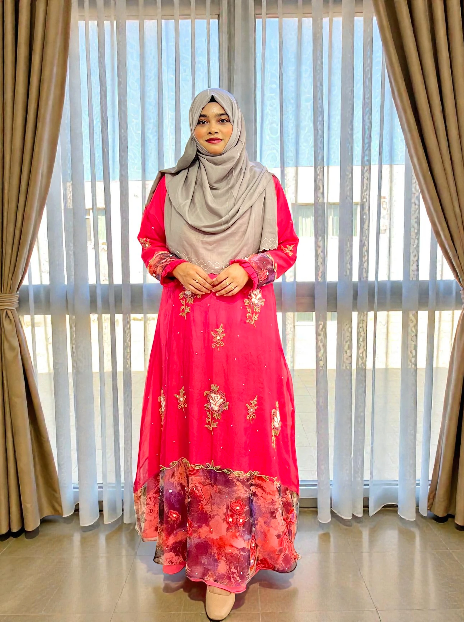 এই মসলিন গাউন পরলে আপনি পাবেন খুবই ক্লাসি ও গ্রেসফুল লুক—স্পেশাল ডে, দাওয়াত বা যে কোনো অনুষ্ঠানের জন্য একদম পারফেক্ট।