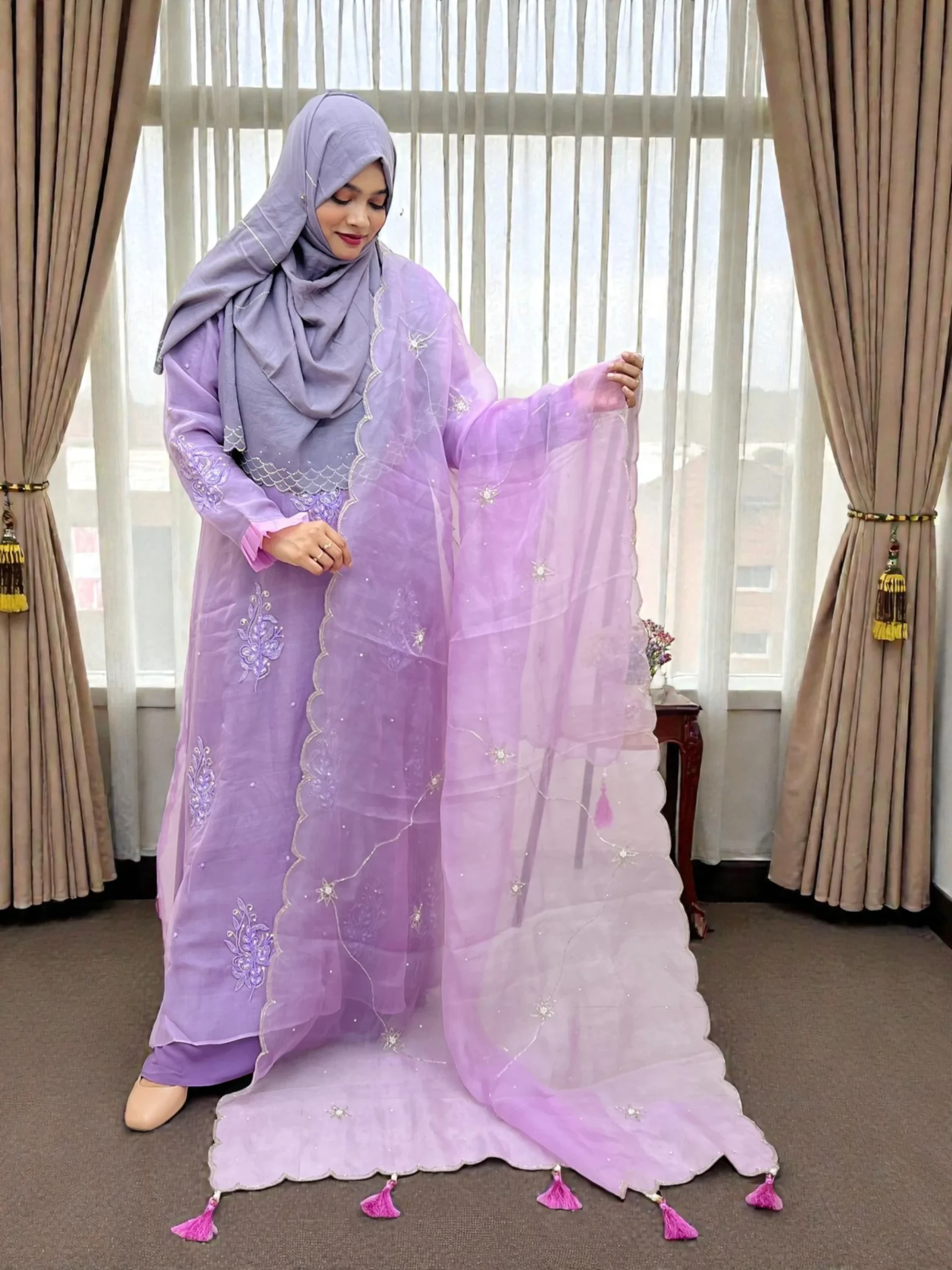 এক্সক্লুসিভ মসলিন গাউন উইথ কারচুপি ওড়না | হিজাবী স্পেশাল প্রিমিয়াম কালেকশন quantity