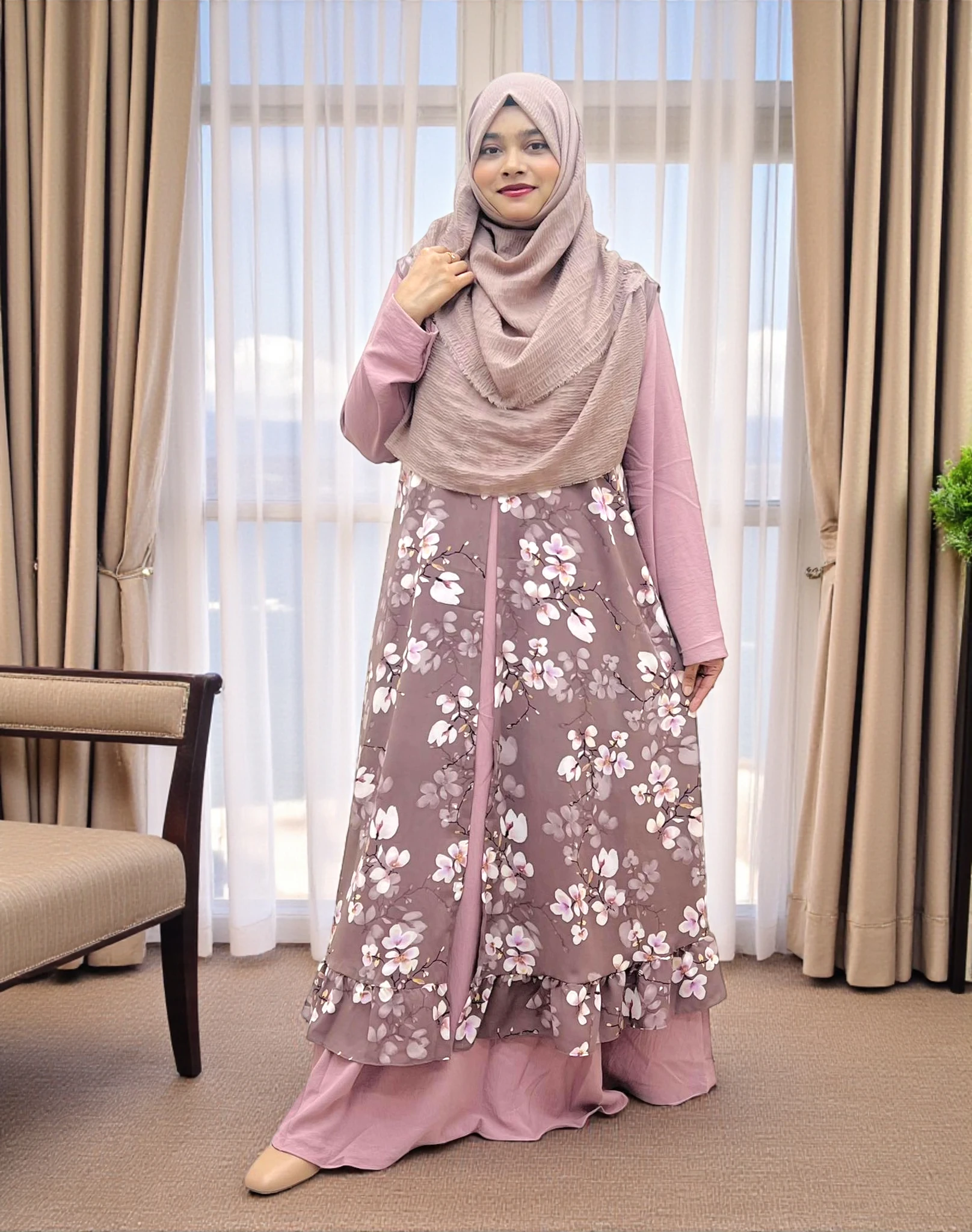 কটির নিচে সুন্দর ফ্রিল ডিজাইন দেয়া আছে, যা পরলে লুকটা আরও এলিগেন্ট ও ক্লাসি দেখায়। স্লিভলেস ডিজাইনের কারণে এটি ডেইলি ওয়্যার, ক্যাজুয়াল আউটিং বা বাসার ব্যবহারের জন্য খুবই উপযোগী।