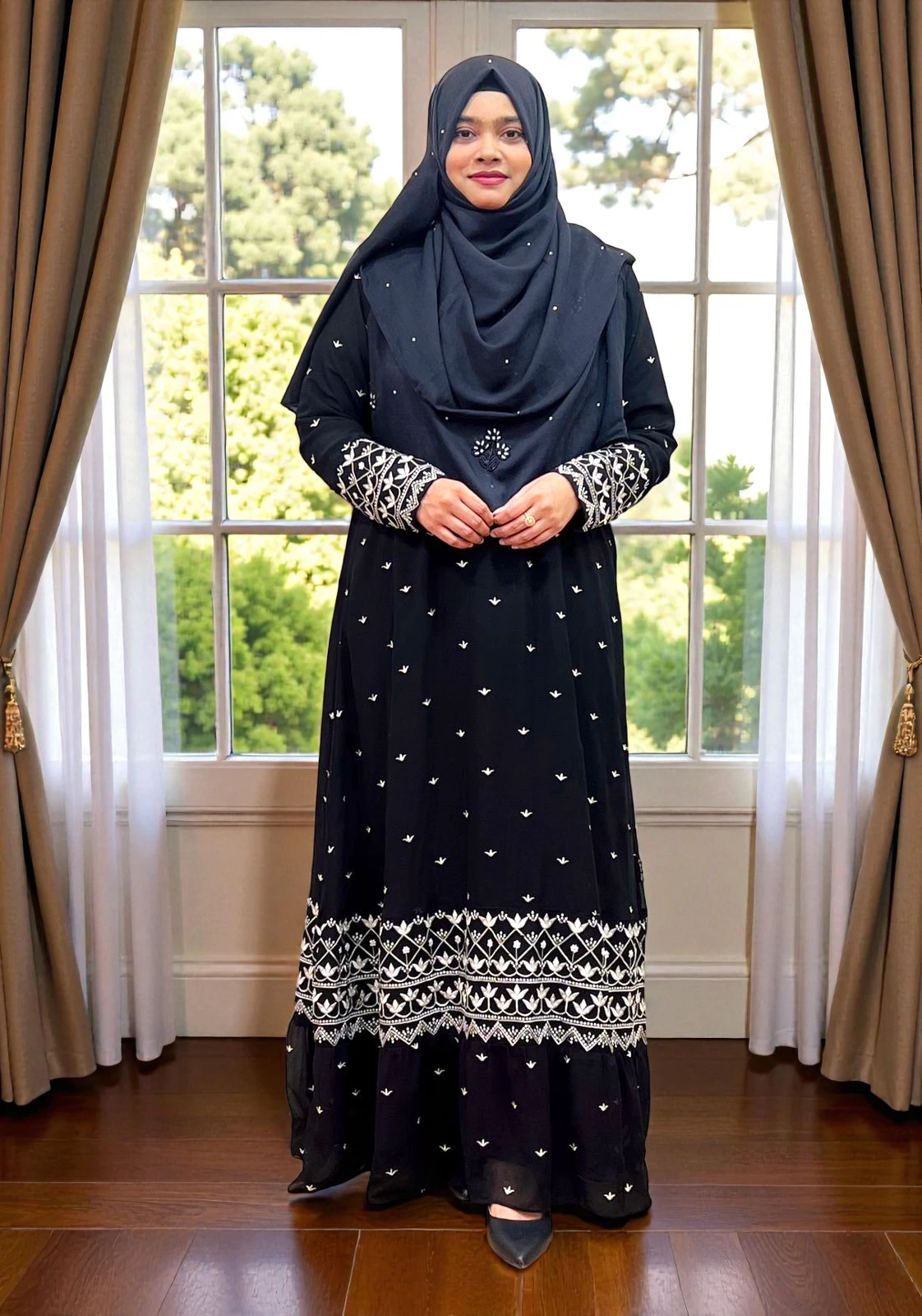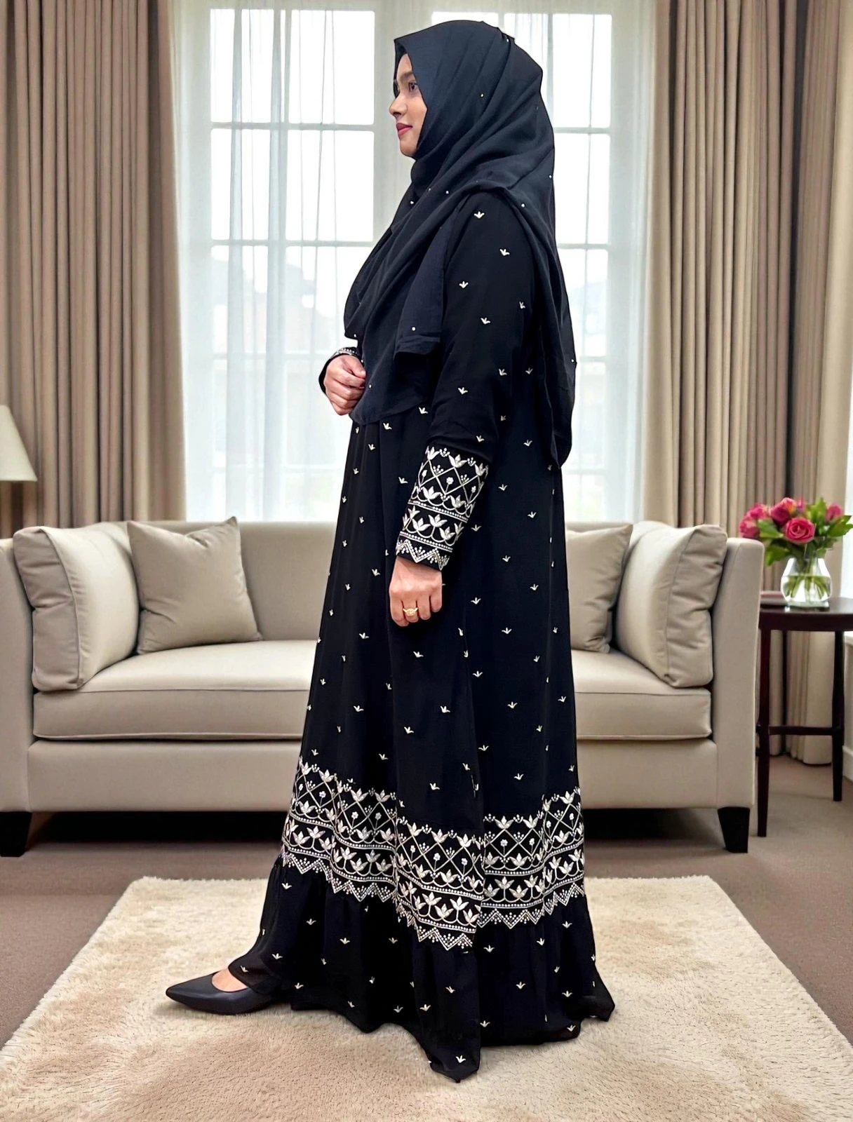নরম জর্জেট কাপড় দিয়ে তৈরি বোরখা এবং সূচিকর্মের কাজ।