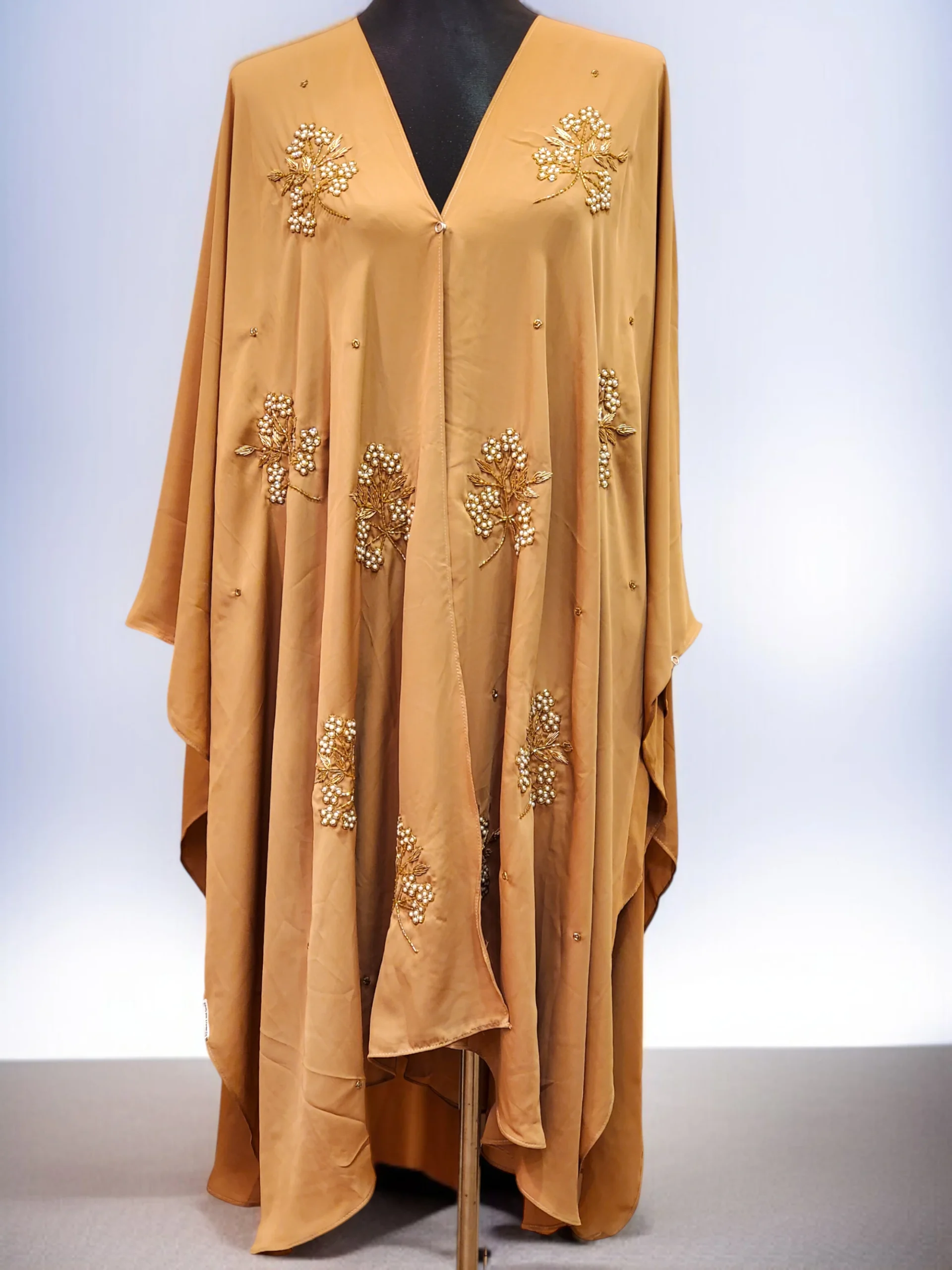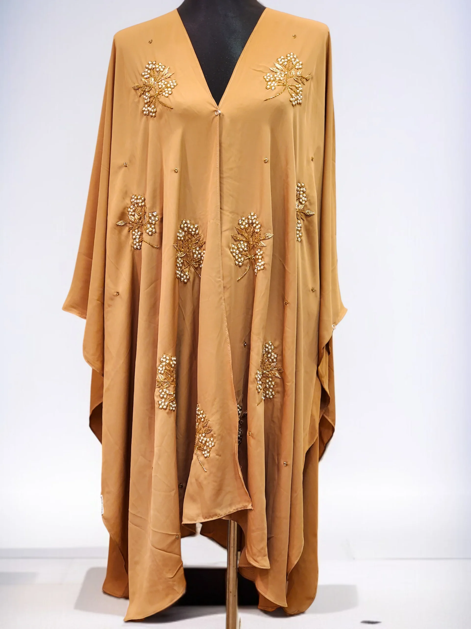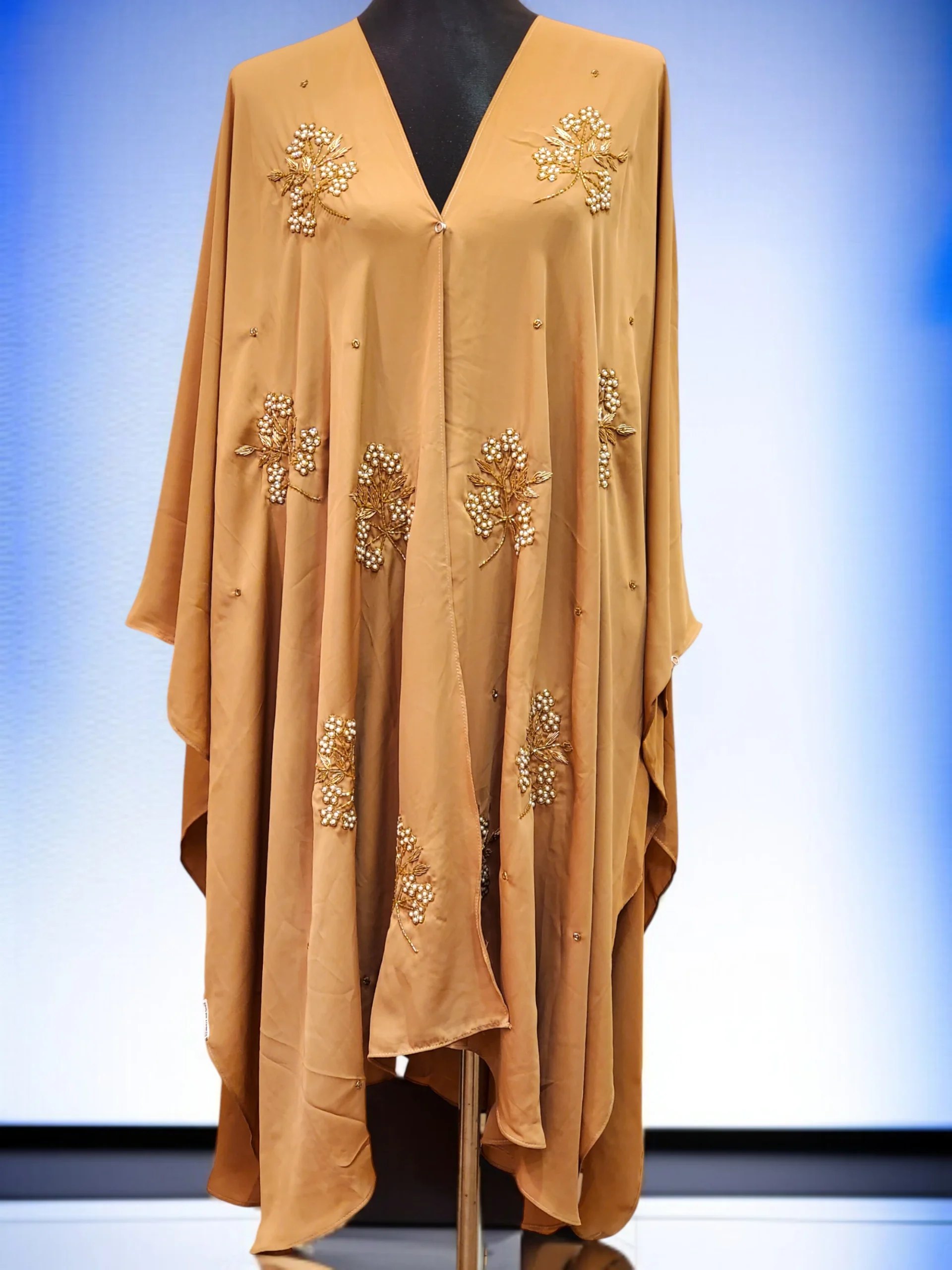অ-স্বচ্ছ দুবাই চেরি উপাদান দিয়ে তৈরি ফ্রি সাইজের কারচুপি কেপ। সাইড প্রোফাইল খোলা।