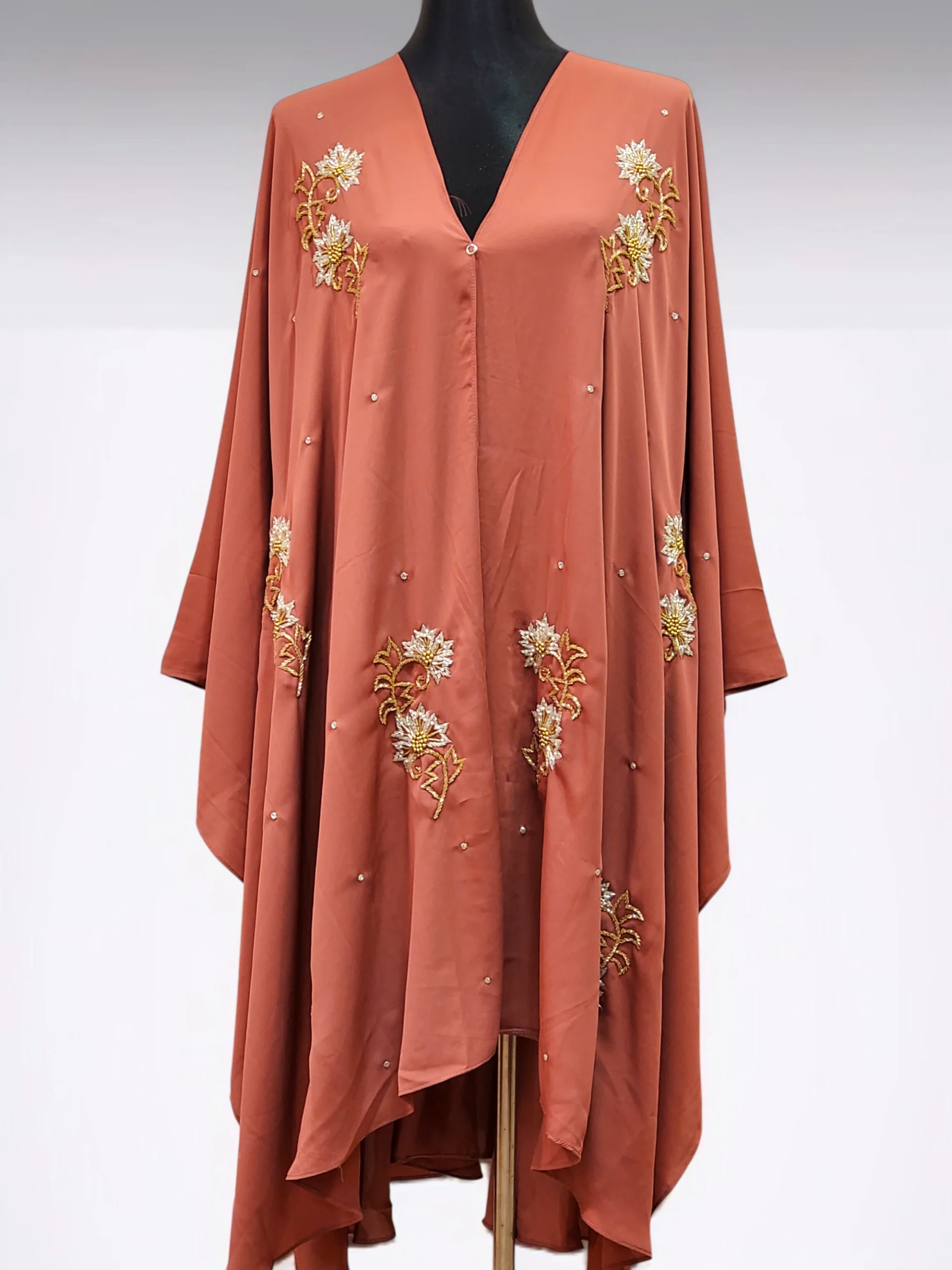 অস্বচ্ছ দুবাই চেরি উপাদান দিয়ে তৈরি অসাধারণ কারচুপি কেপ ফ্রি সাইজ।