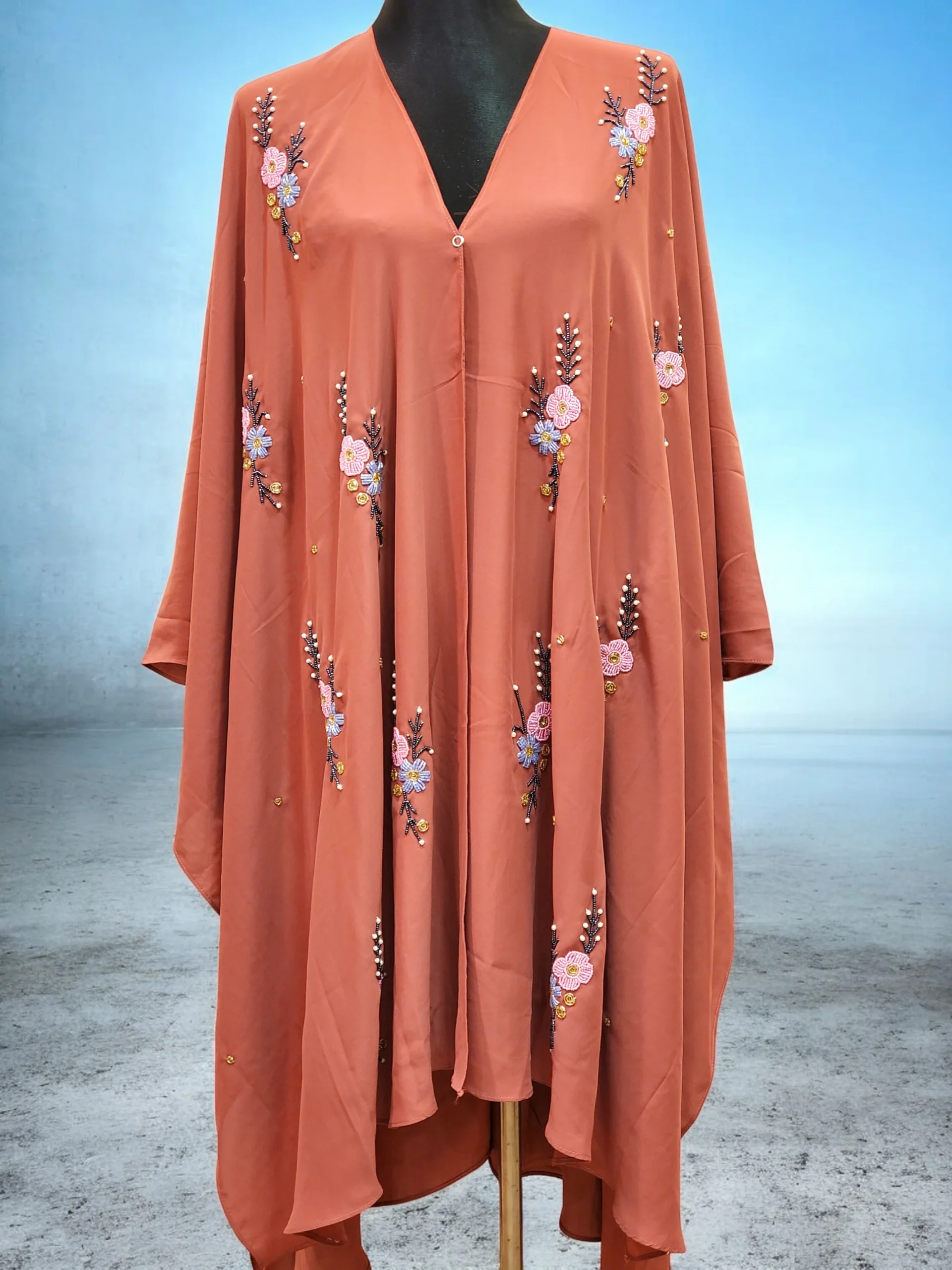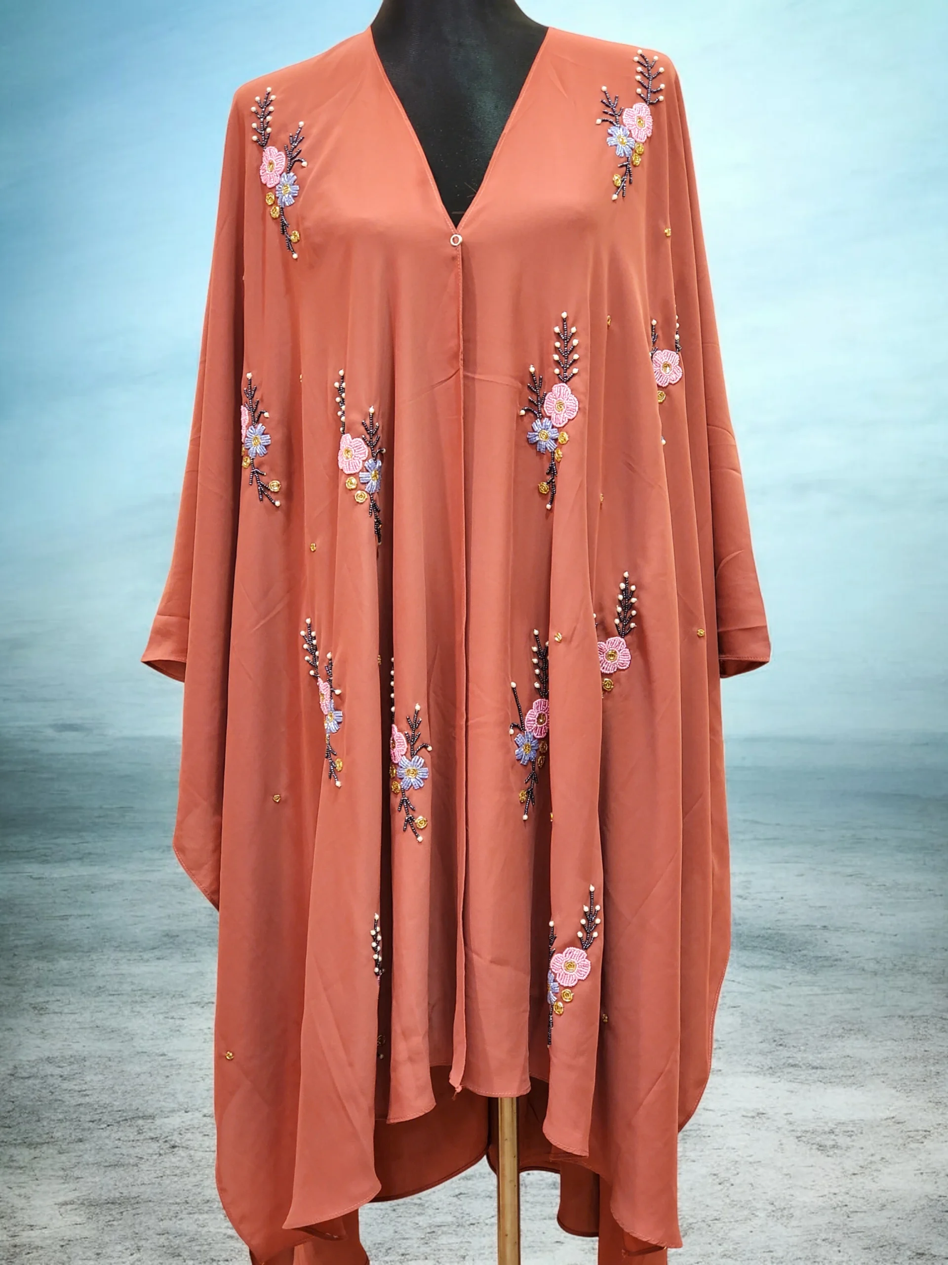 অসাধারণ কারচুপি কেপ ফ্রি সাইজ। অস্বচ্ছ দুবাই চেরি উপাদান দিয়ে তৈরি।