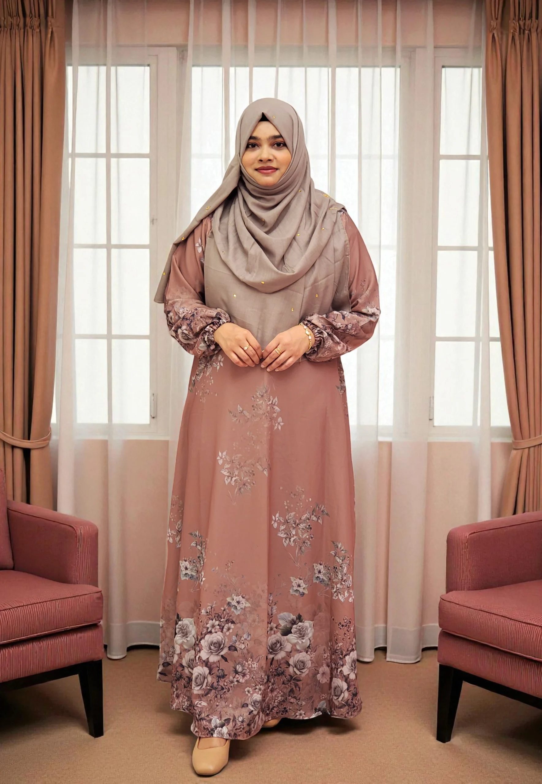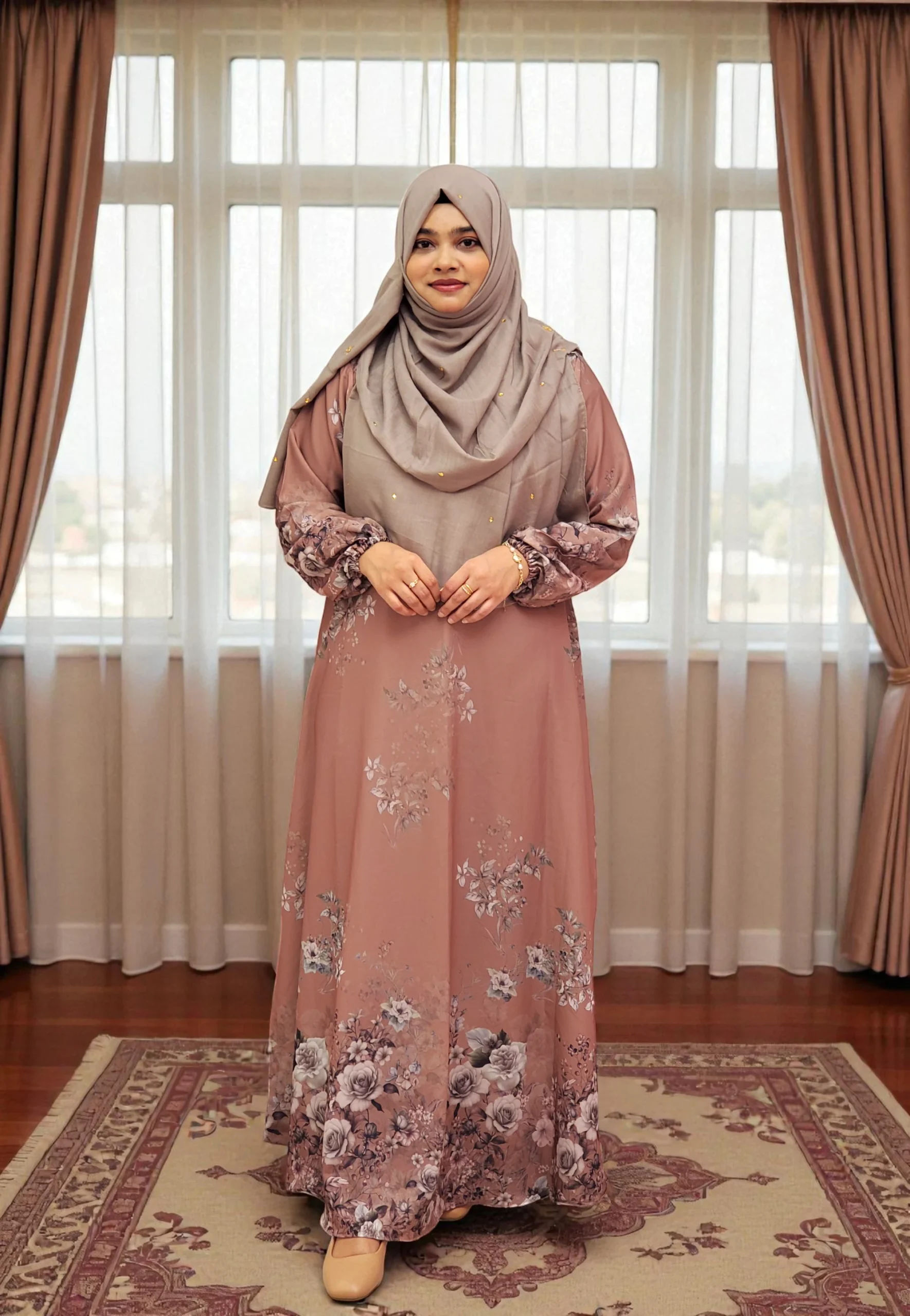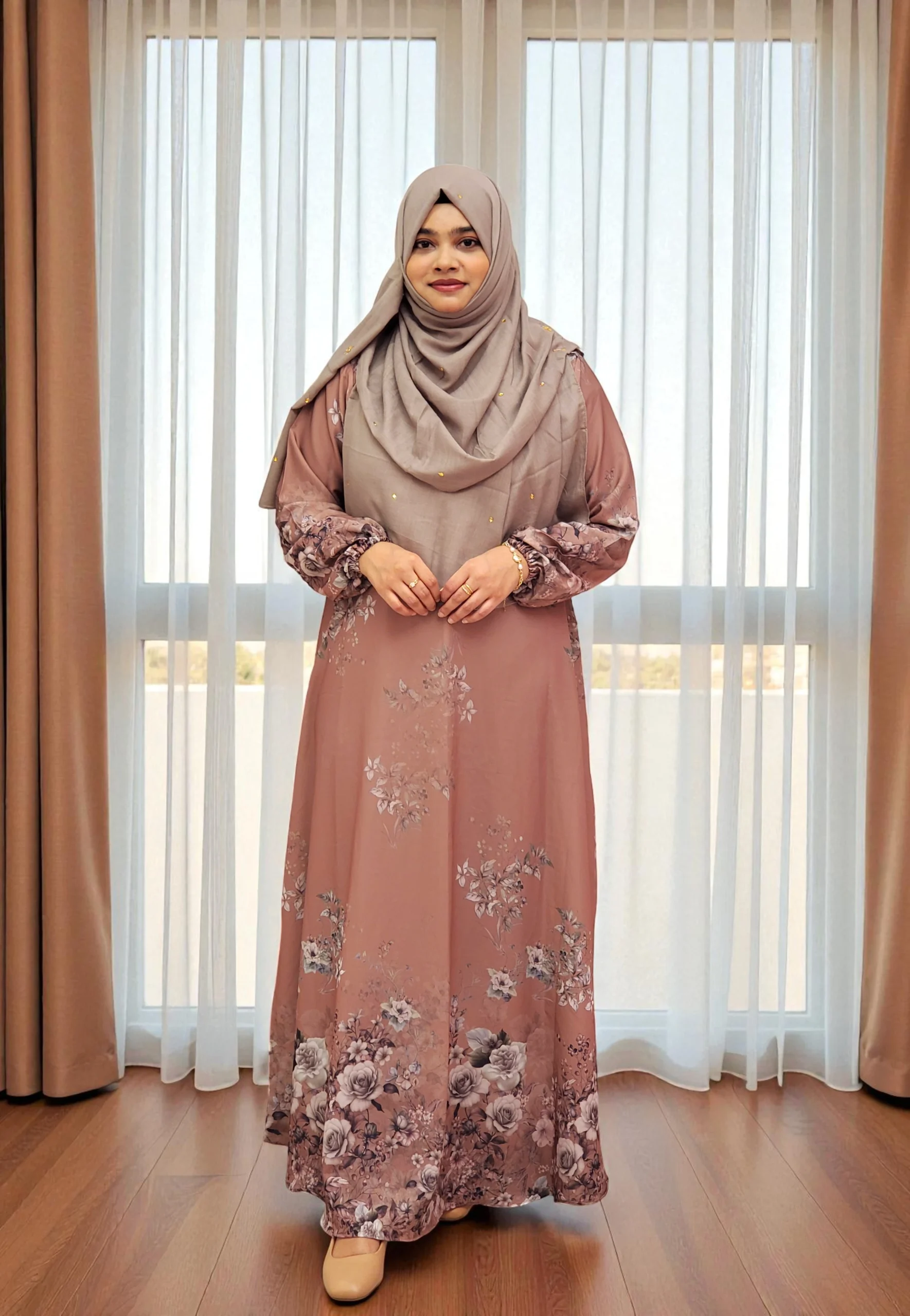 এক-খণ্ড প্রিন্টেড গাউন। নরম আমদানি করা দুবাই সিল্ক ফেব্রিক্স দিয়ে তৈরি।