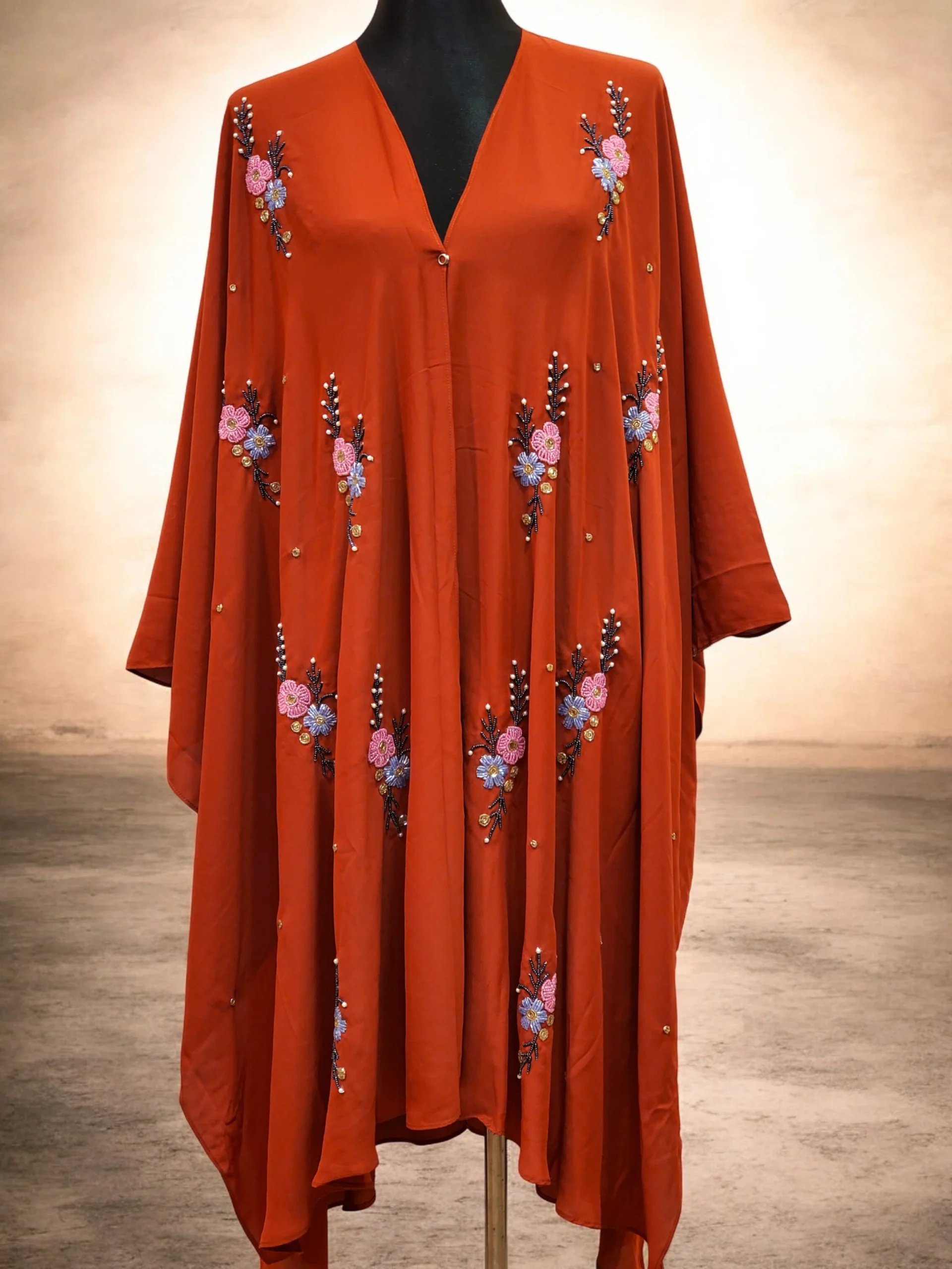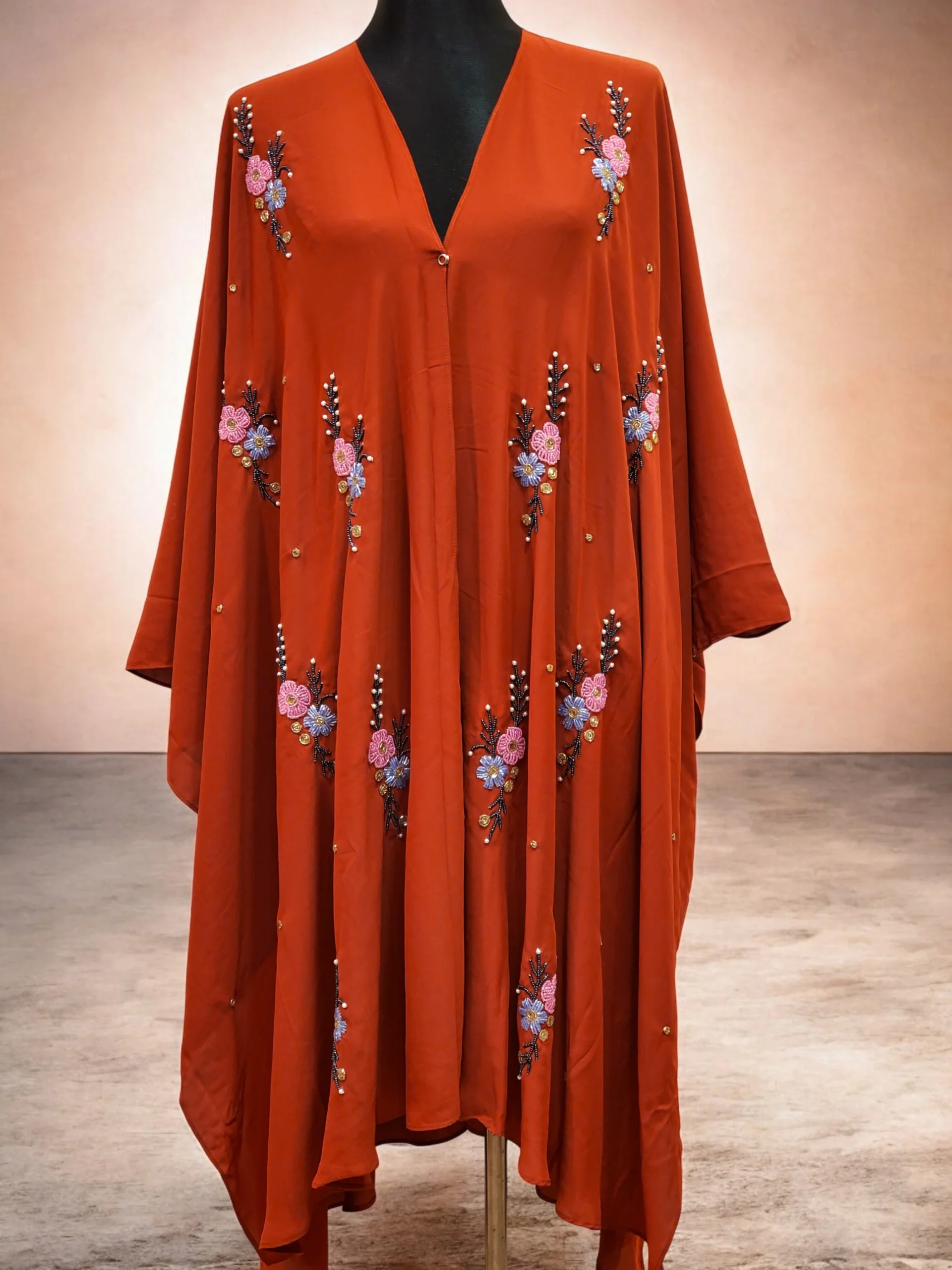 কারচুপির অসাধারণ কেপ ফ্রি সাইজ। অস্বচ্ছ দুবাই চেরি উপাদান দিয়ে তৈরি।