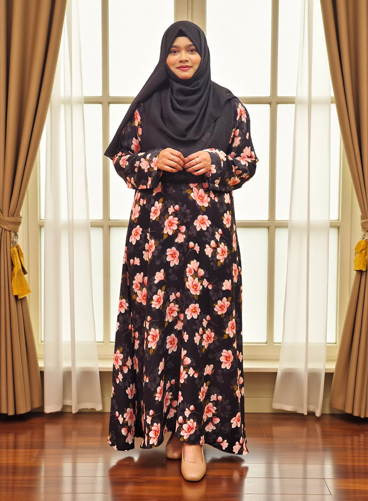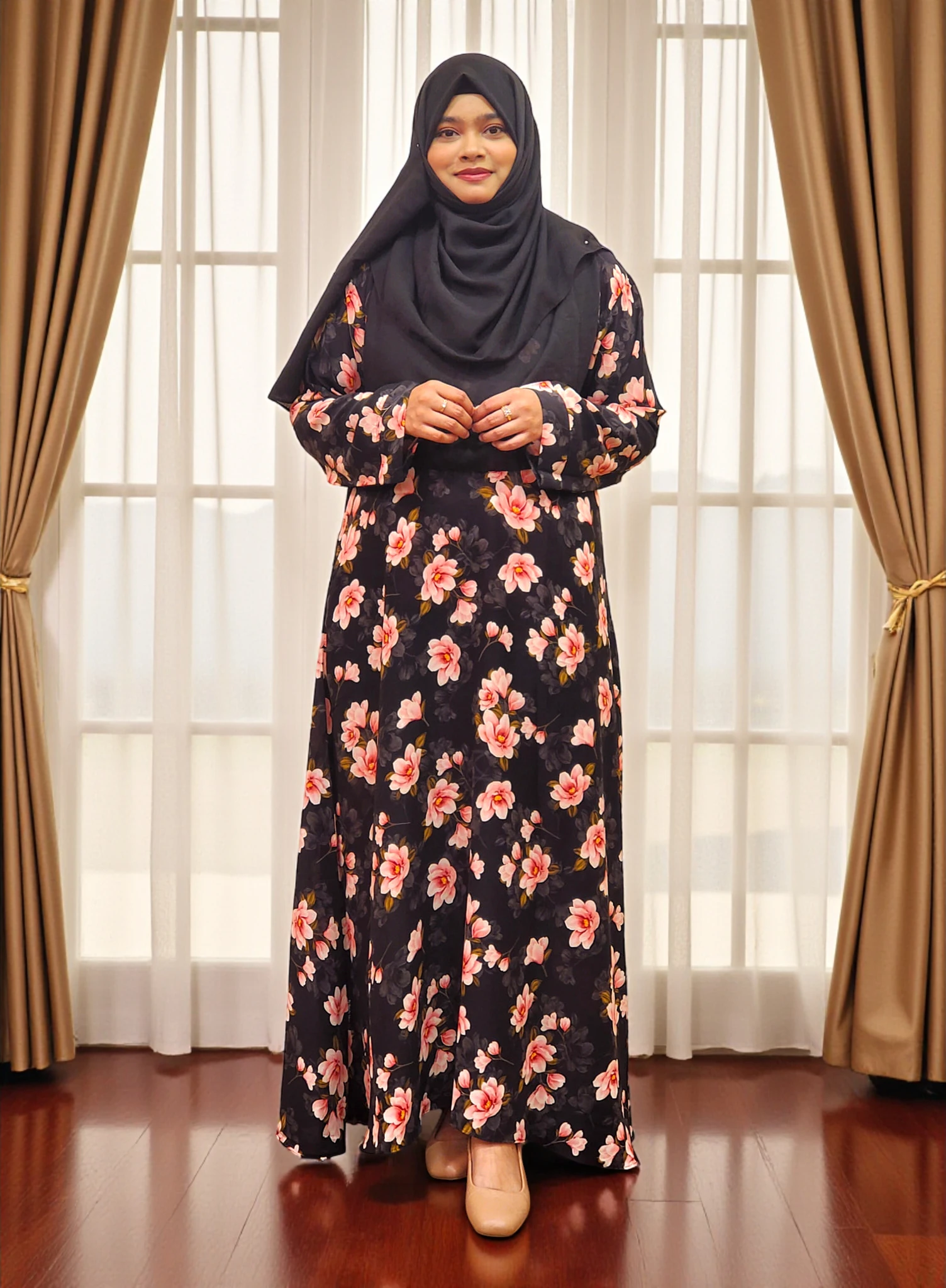 Non-transparent borkha made of soft alex fabrics. On the right side is a pocket.
