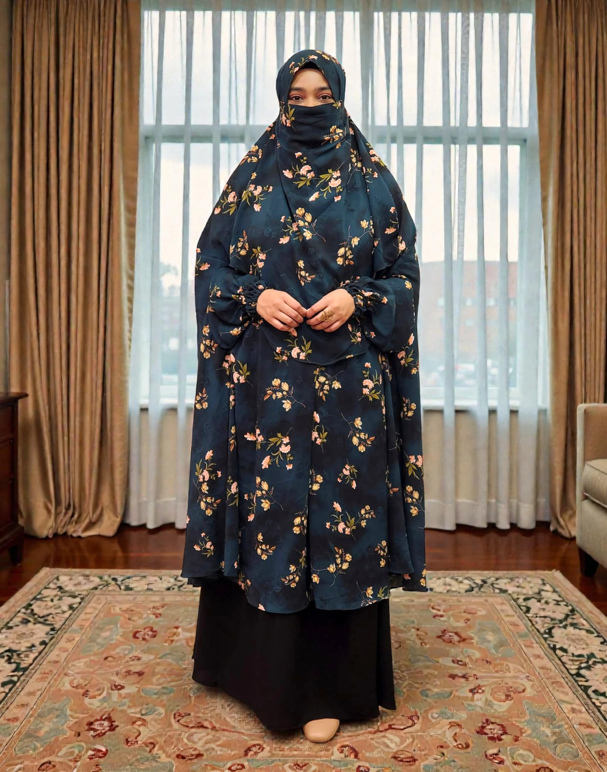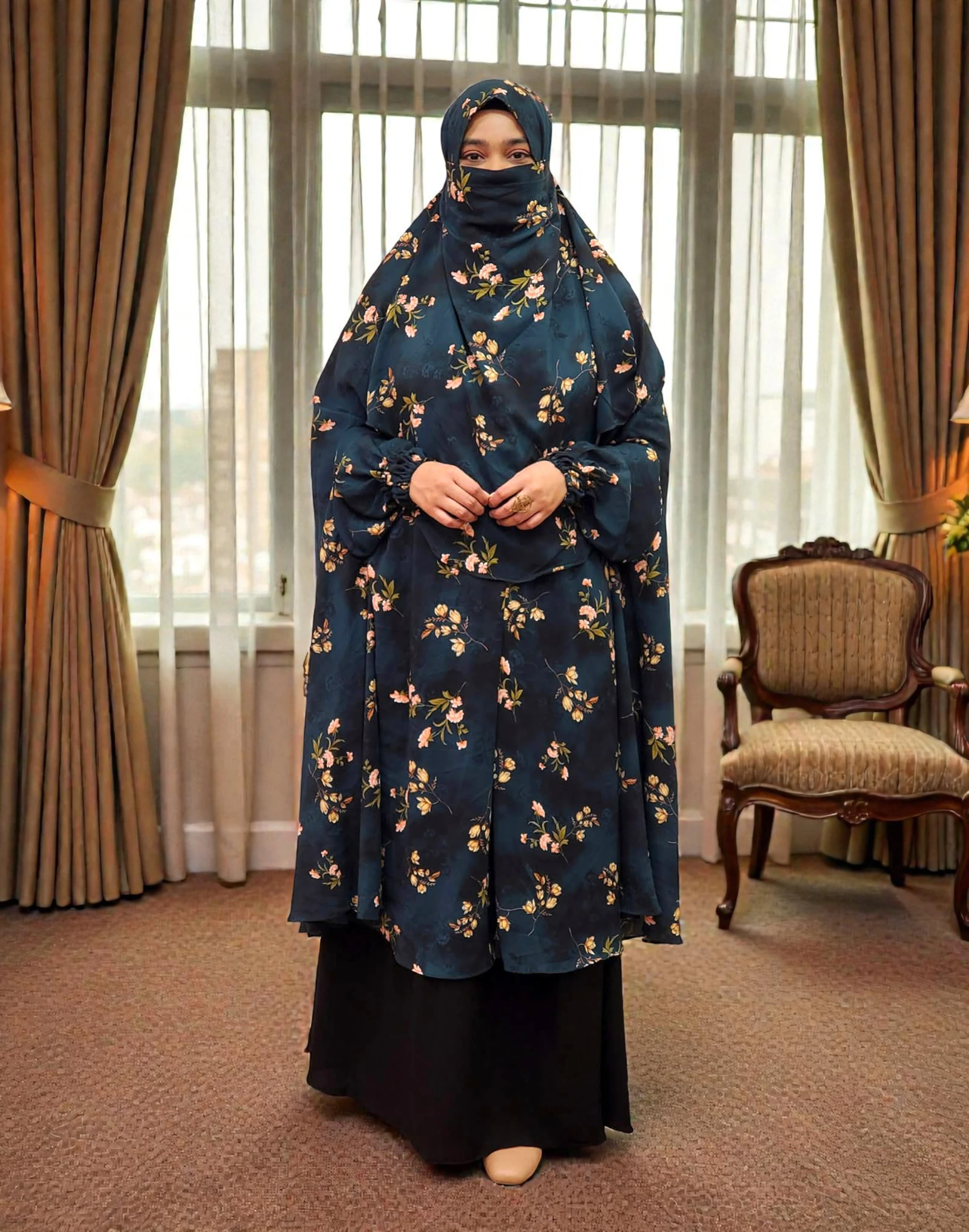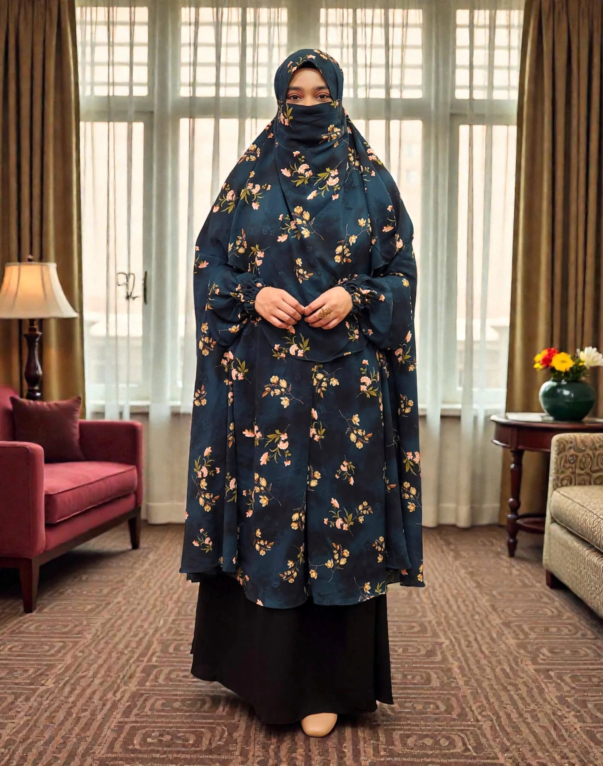 Alex material Khimar with niqab attachment, Summer-friendly free size and non-transparent