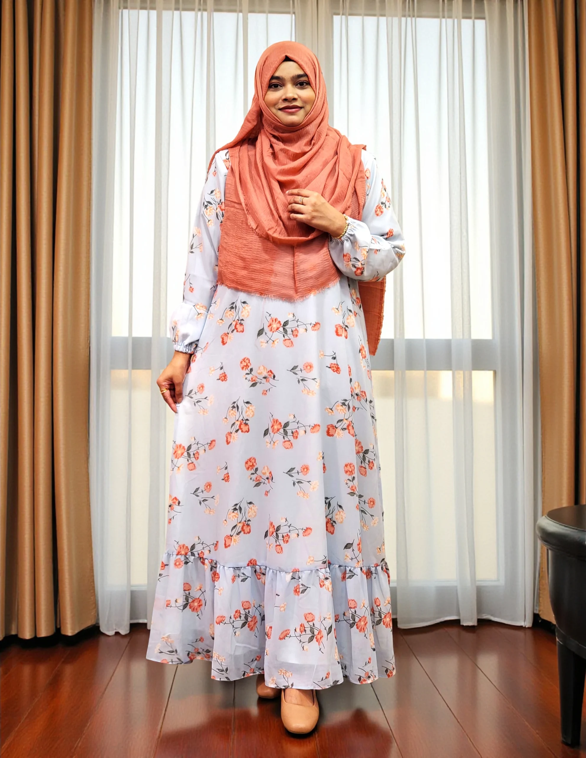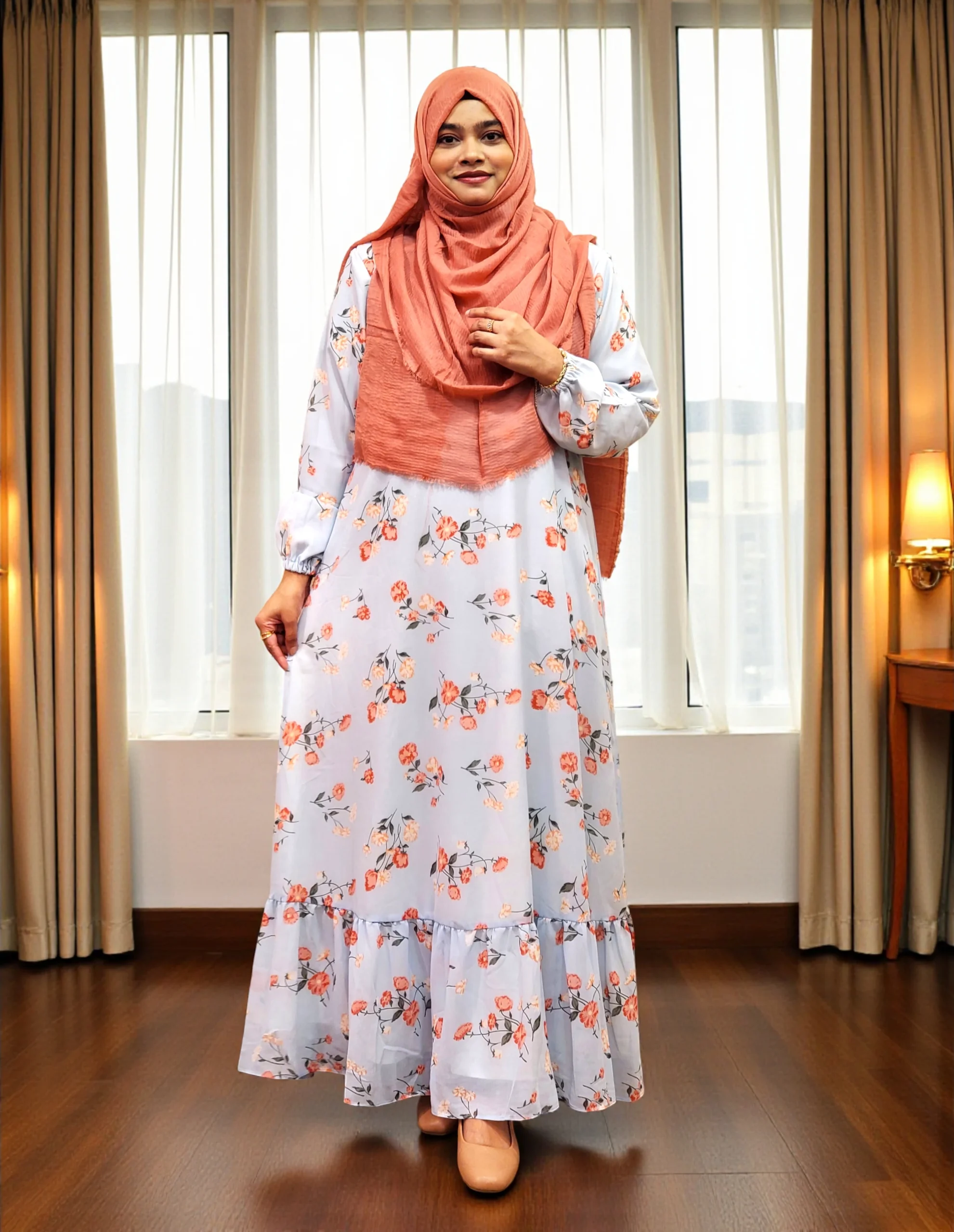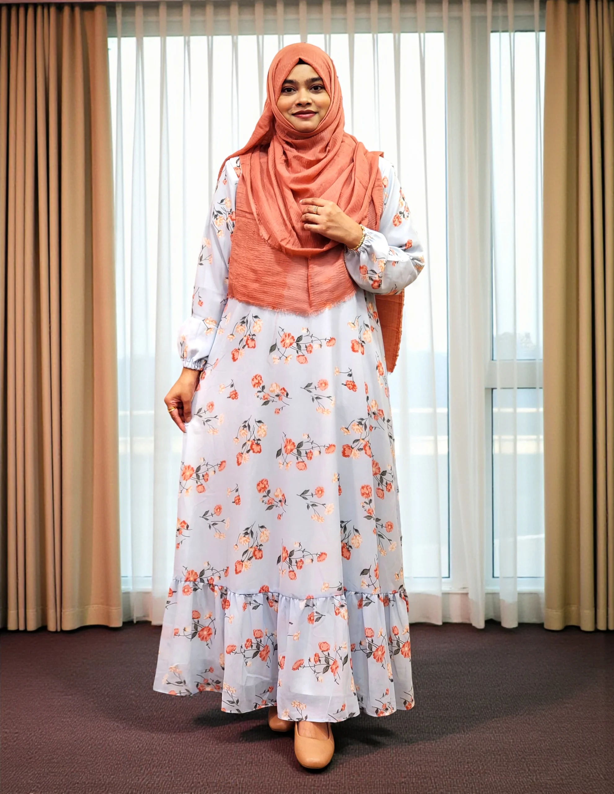 প্রিন্টেড ডাবল পার্ট গাউন। জর্জেট কাপড় দিয়ে তৈরি।