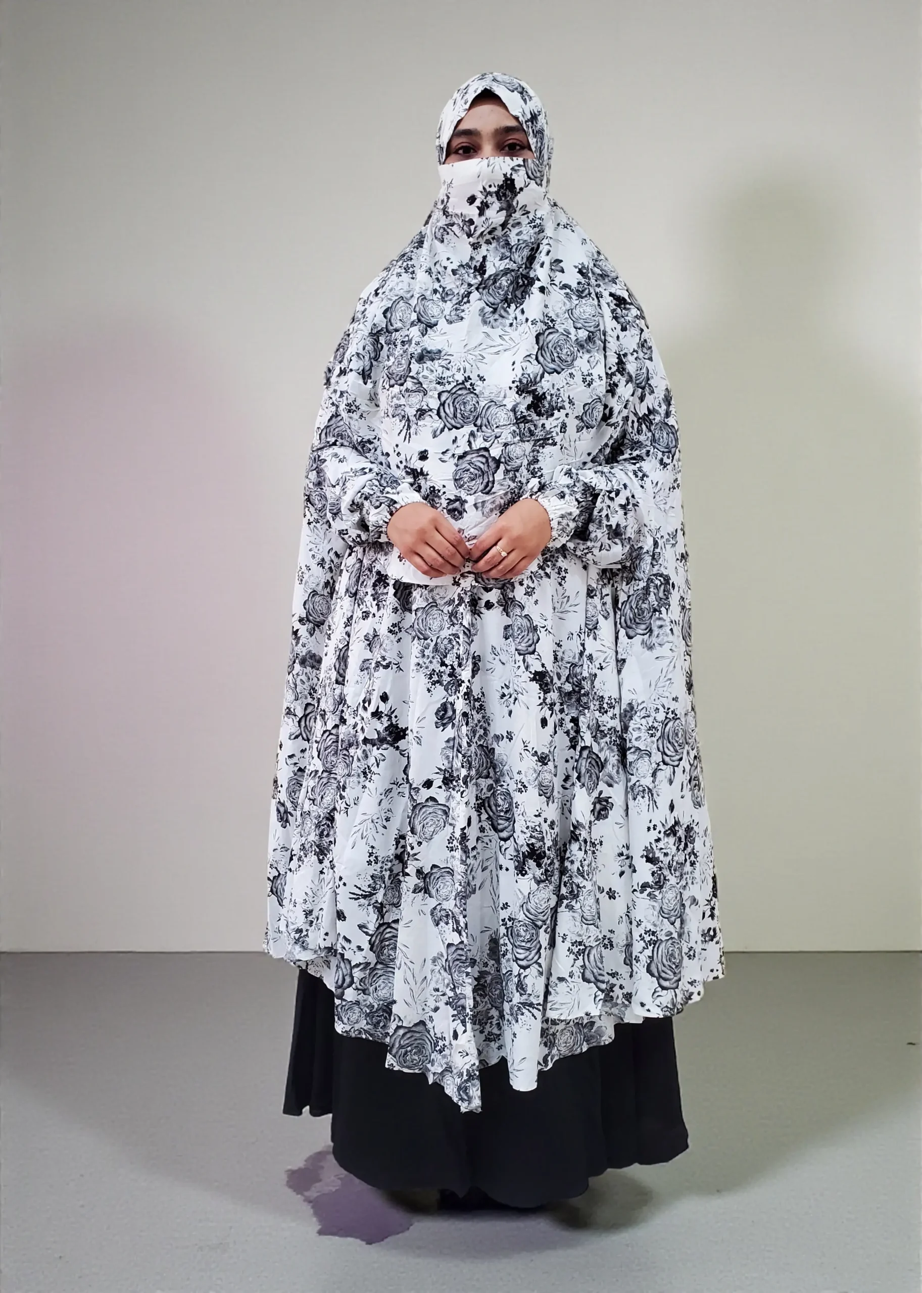 মুদ্রিত ফ্রি সাইজ খিমার। লিনেন কাপড় দিয়ে তৈরি